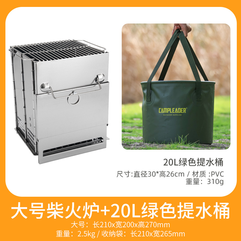 • 대형 사각 일체형 장작 난로 + 20L 녹색 물통