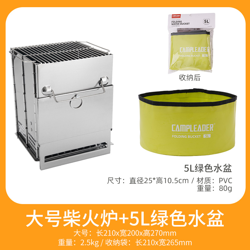 • 대형 사각 일체형 장작 난로 + 5L 녹색 물통
