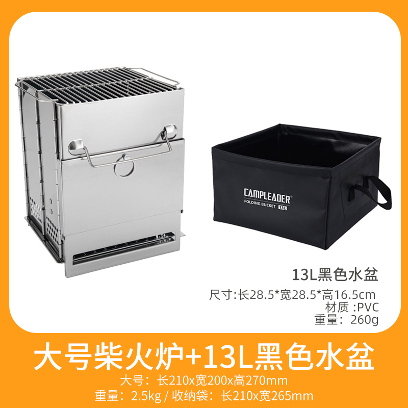 • 대형 사각 일체형 장작 난로 + 13L 검정색 물통