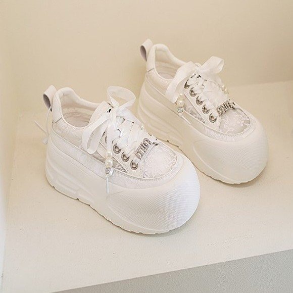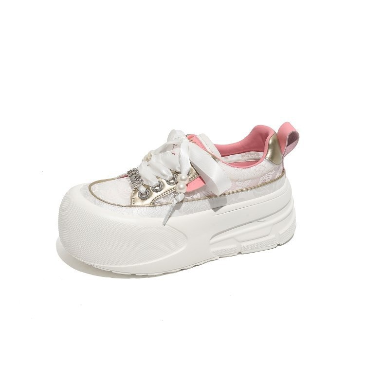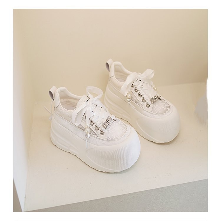 두꺼운 밑창 작은 흰색 신발 여성의 2025 새로운 싱글 레이어 신발 여름 작은 높이 증가 신발 메쉬 통기성 스포츠 캐주얼 스케이트 신발스토어 가기