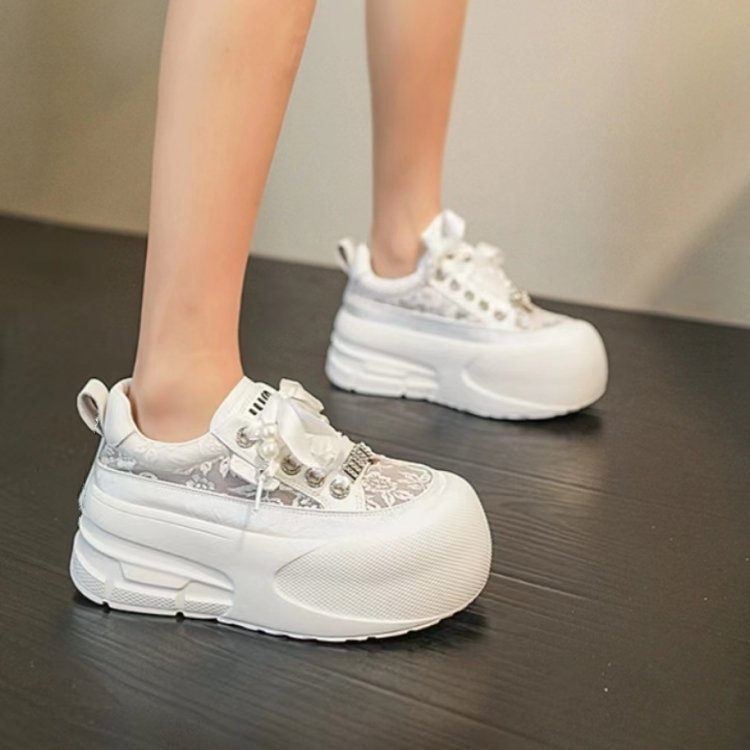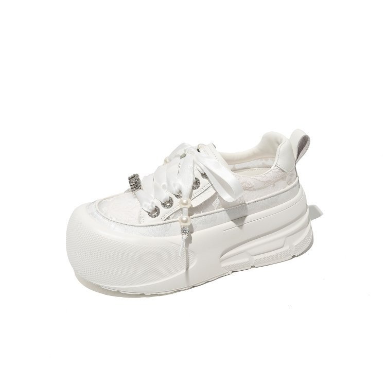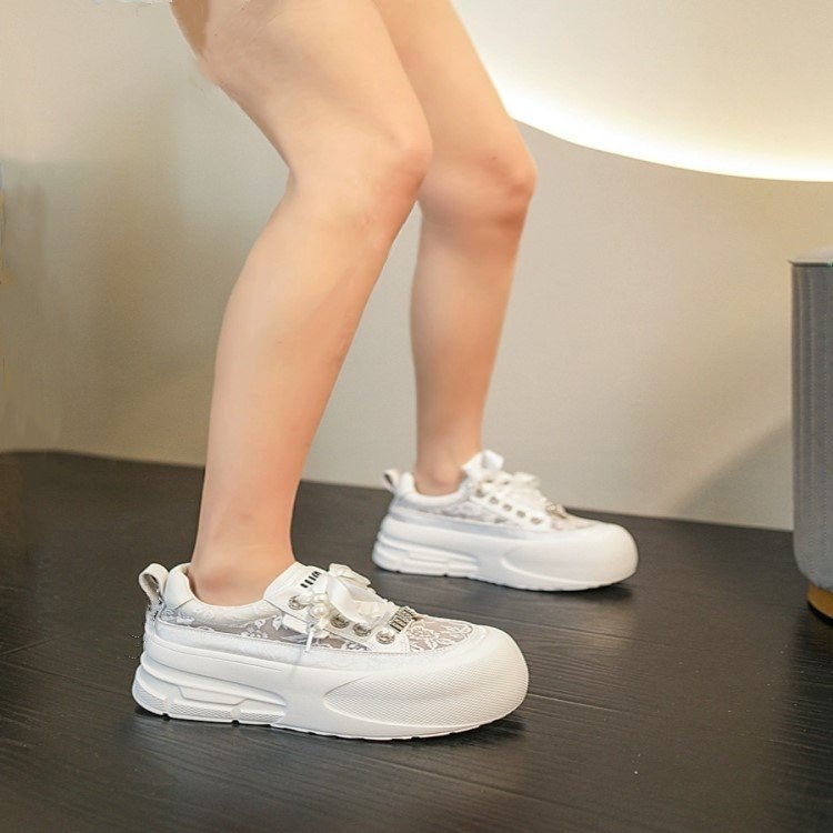 두꺼운 밑창 작은 흰색 신발 여성의 2025 새로운 싱글 레이어 신발 여름 작은 높이 증가 신발 메쉬 통기성 스포츠 캐주얼 스케이트 신발