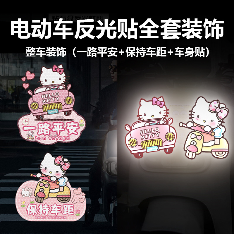 전기 자동차 밤 반사 스티커 오토바이 스티커 장식 헬로 키티 자동차 개성 자동차 스티커 스크래치 커버스토어 가기