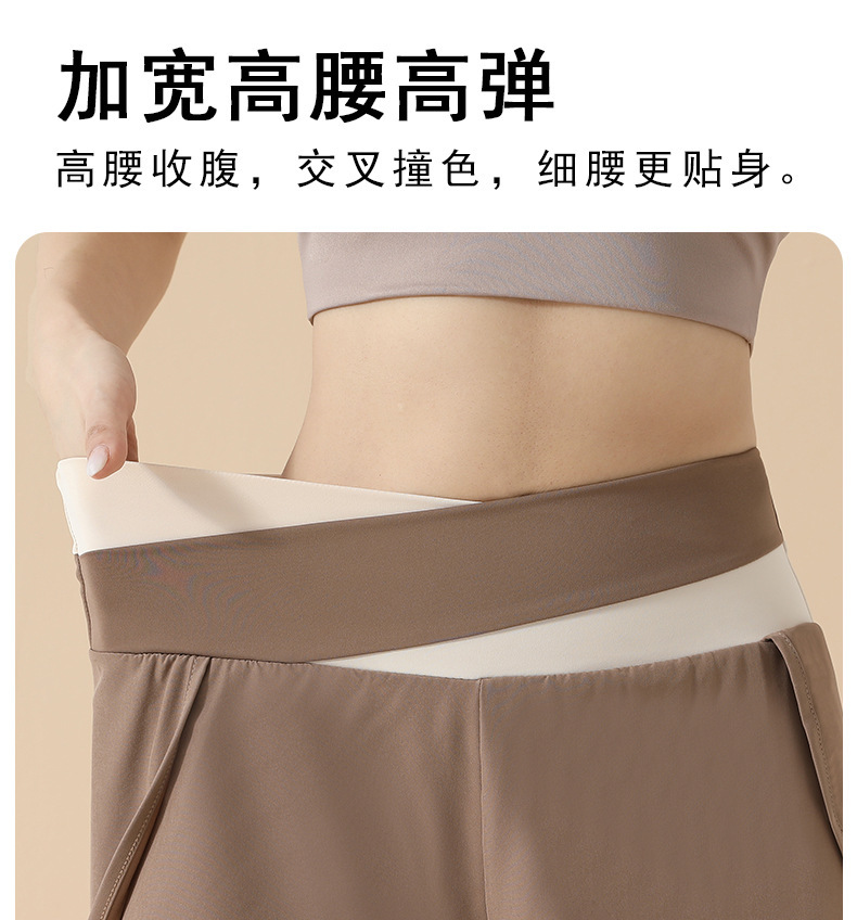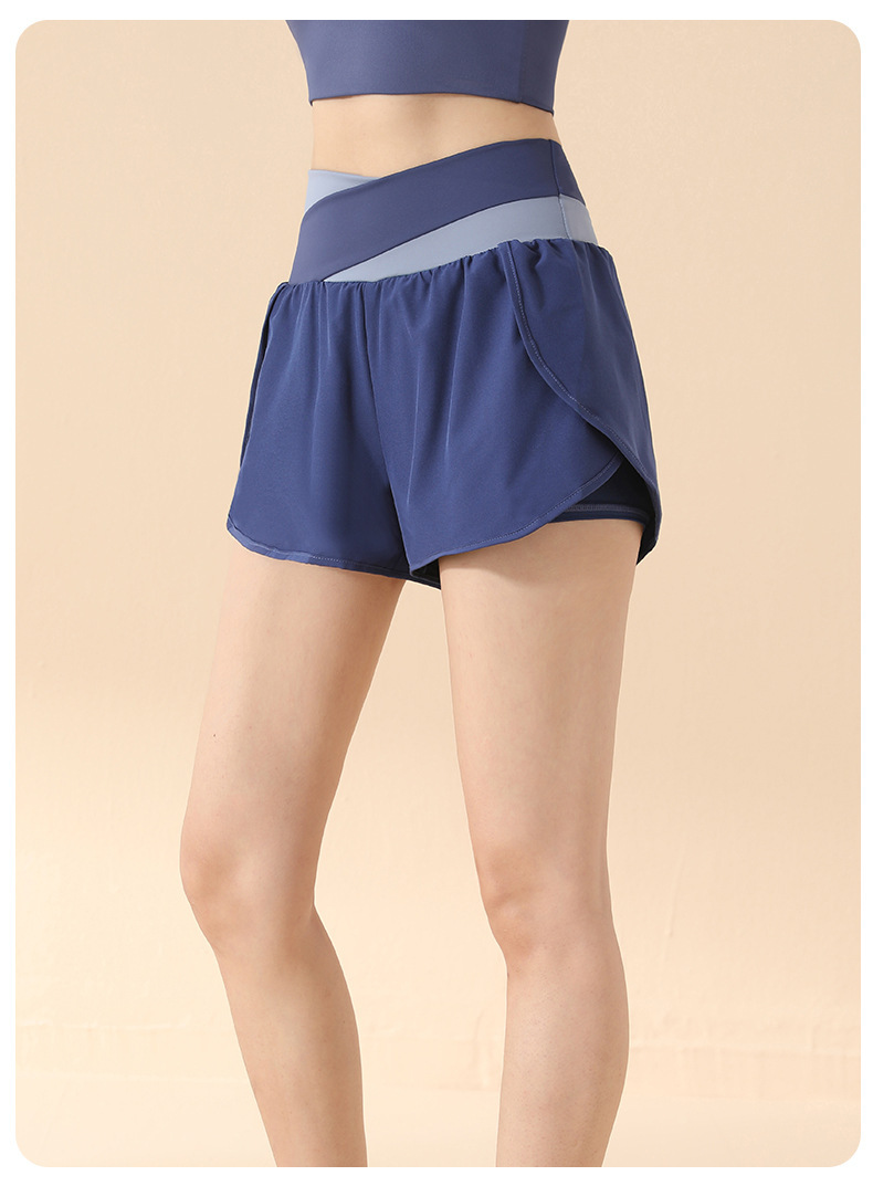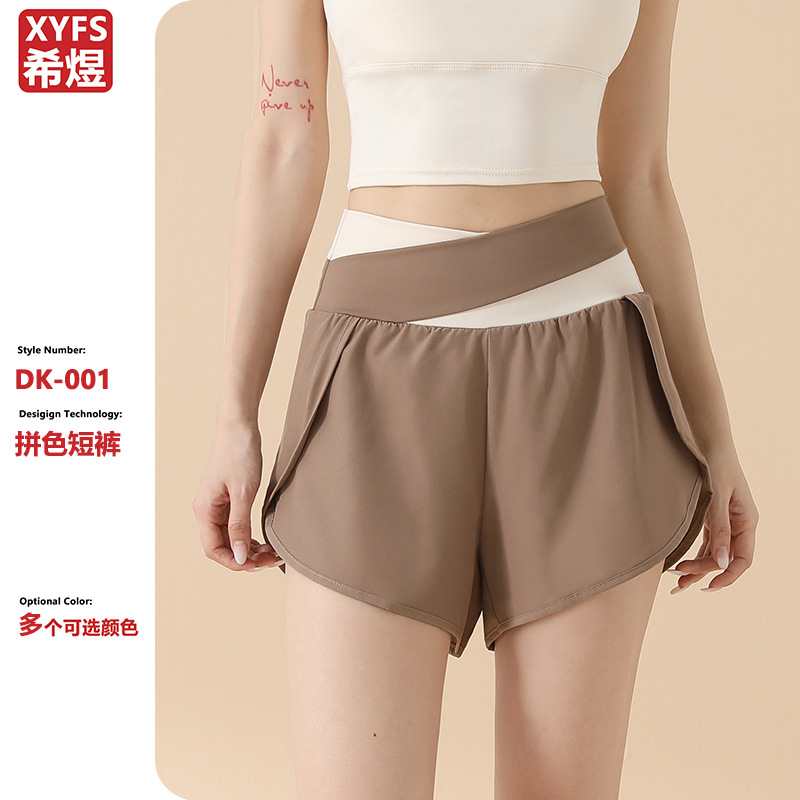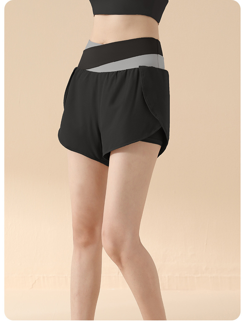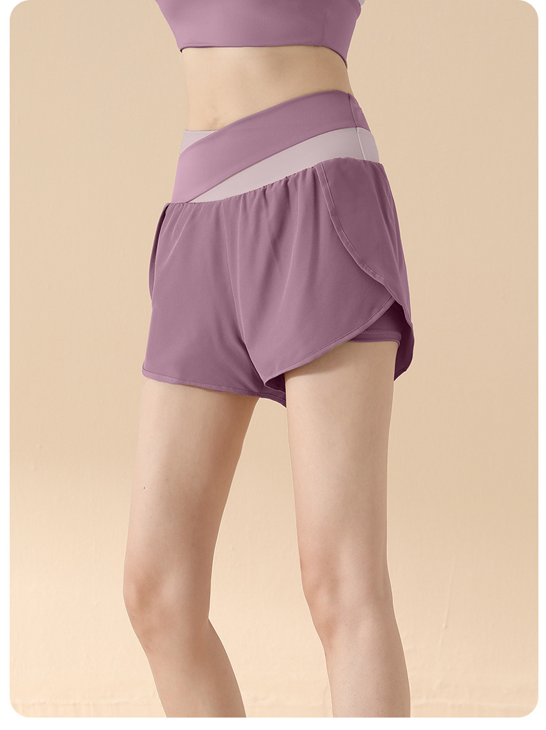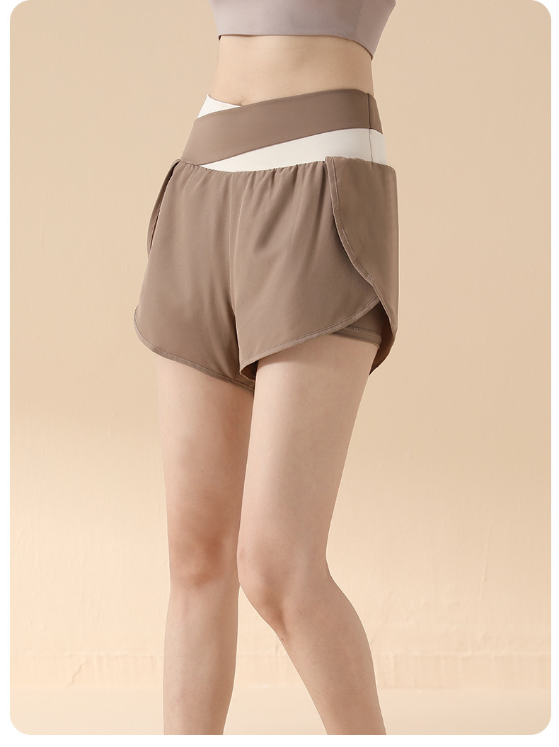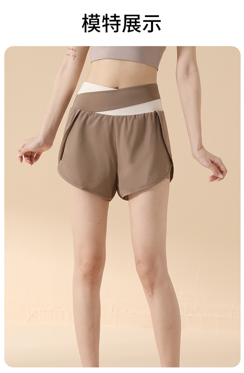 2025 힙합 컬러 매칭 페이크 투피스 요가 반바지 벌거 벗은 눈부심 방지 스포츠 반바지 여성용 러닝 피트니스 바지