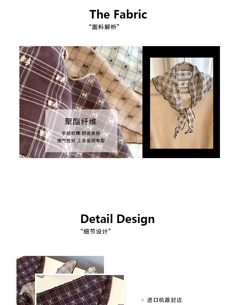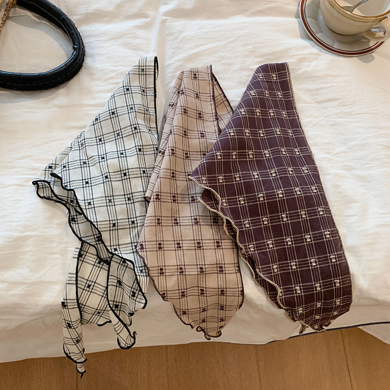삼각형 스카프 영어 스타일 빈티지 실크 스카프 패션 외부 착용 작은 목도리 따뜻한 목 보호 스카프 학술 스타일 격자 무늬 터번