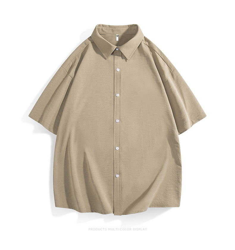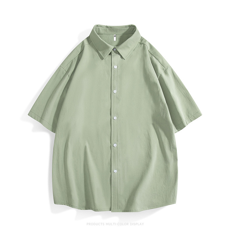 여름 새로운 하이 퀄리티 아이스 실크 셔츠 남자의 반팔 얇은 셔츠 일본 스타일 트렌디 브랜드 더피 핸섬 남성 디자인 고급 감각스토어 가기