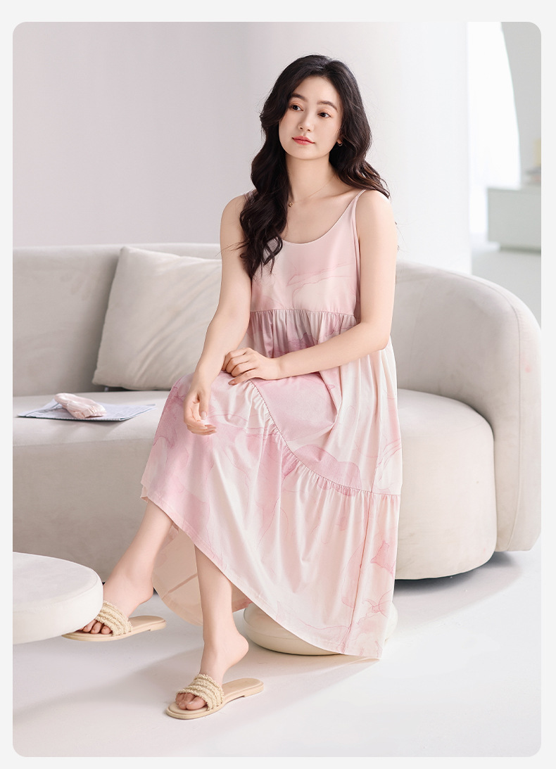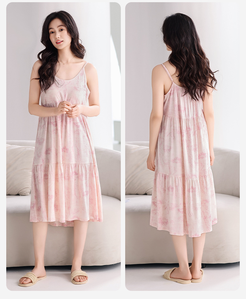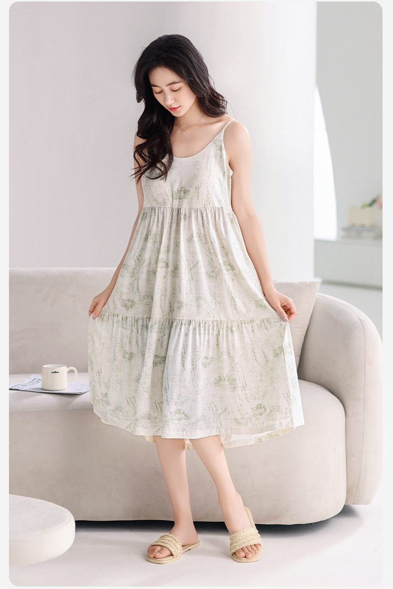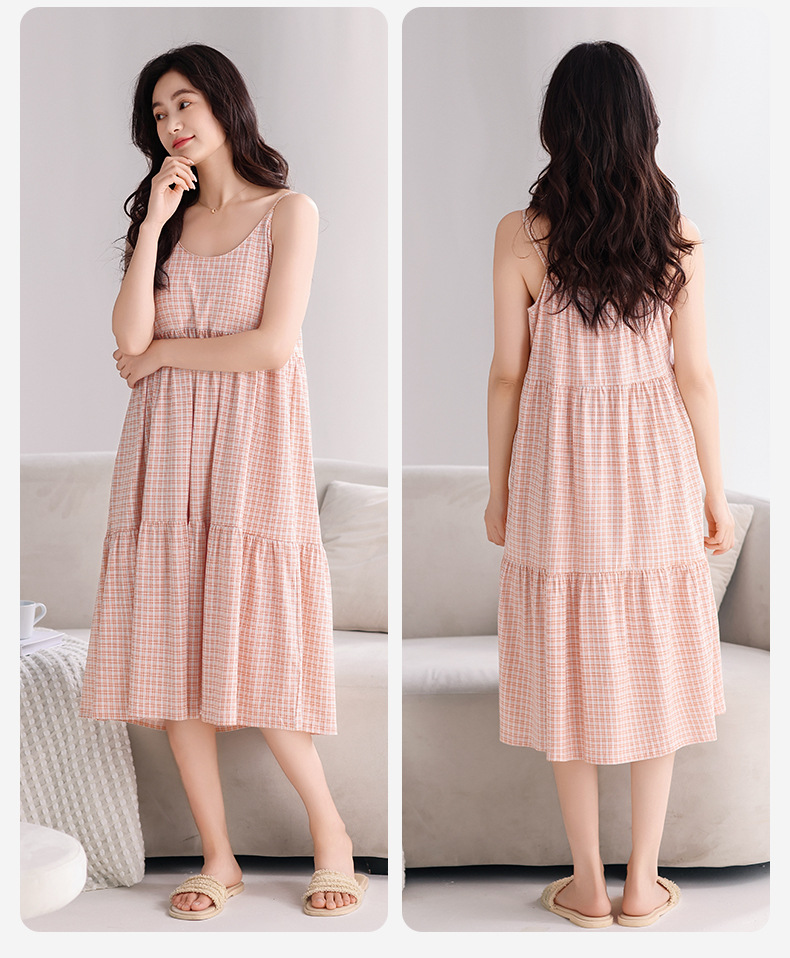 여자 슬링 나이트가운 여름 코튼 섹시한 여름 가슴 패드 2025 새로운 안티 오목한 파자마 홈 의류스토어 가기