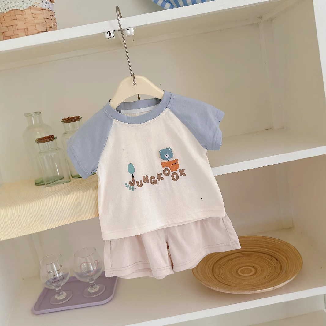소년 여름 세트 2025 새로운 아기 세련된 유행 작은 소년 옷 아기 티셔츠 바지 두 조각 세트스토어 가기