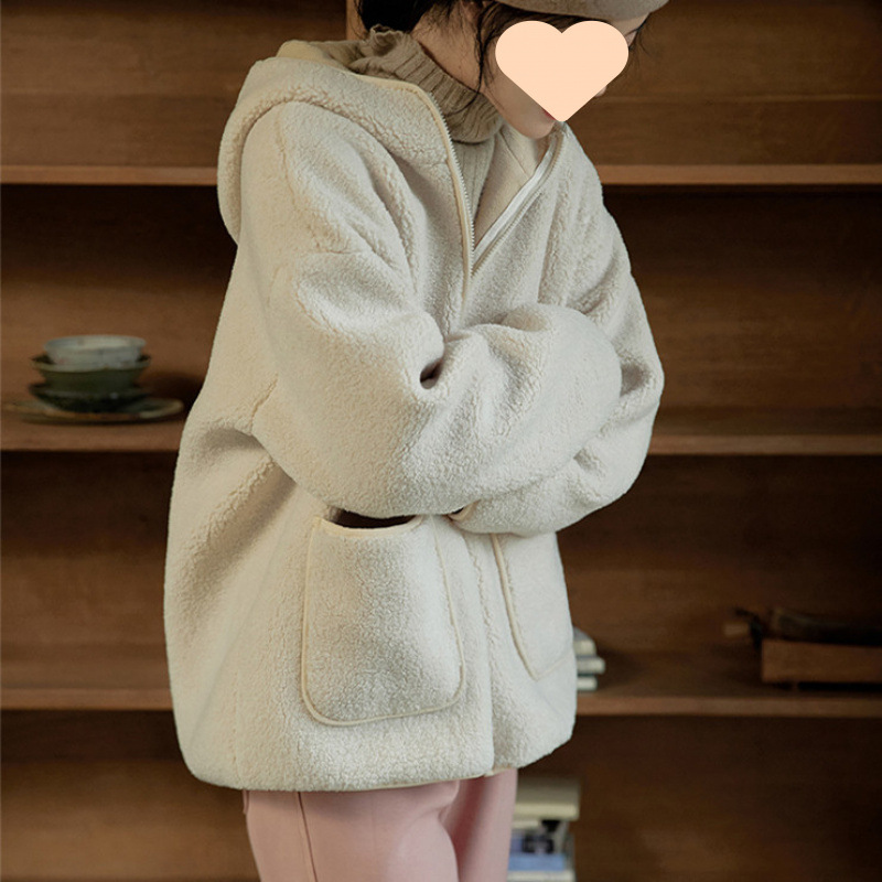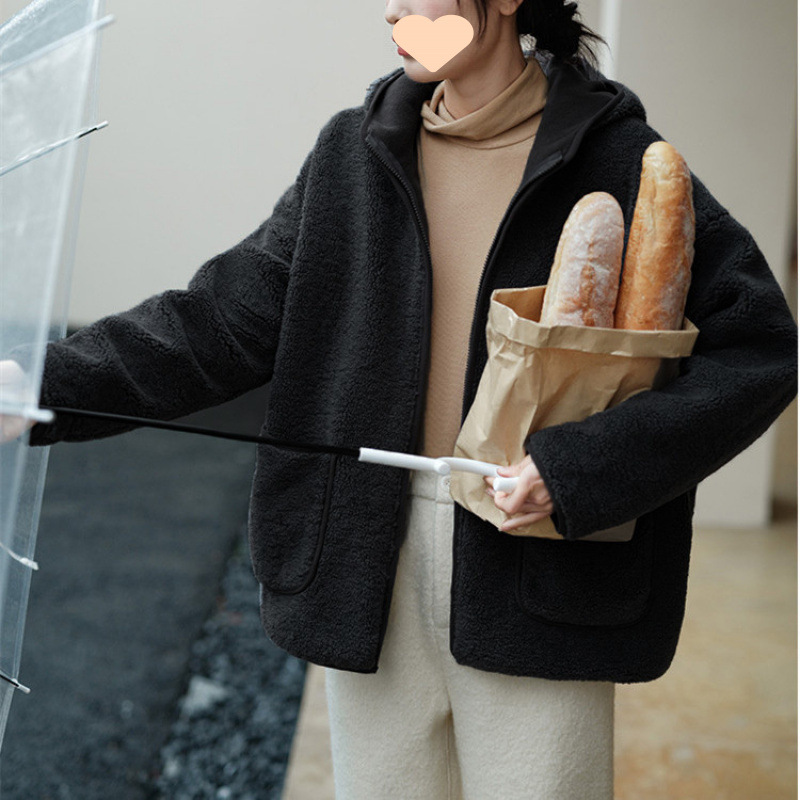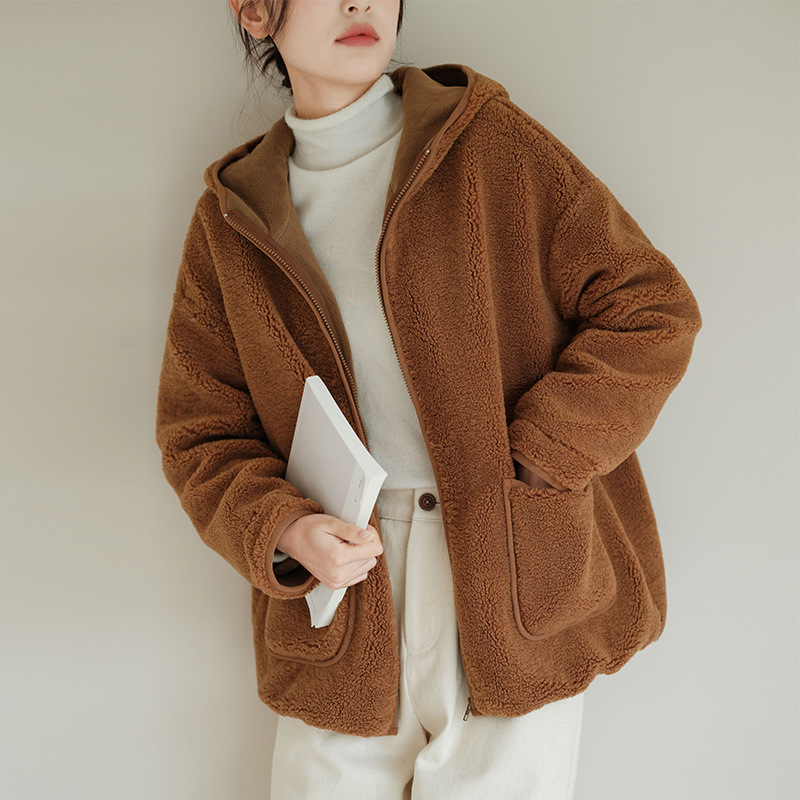 후드 양고기 양모 코트 여성용 새 플러스 사이즈 따뜻한 원피스 입자 벨벳 코트 두꺼운 양털 코트스토어 가기