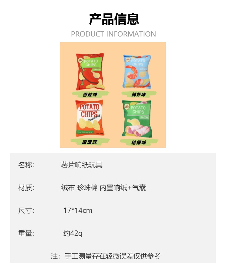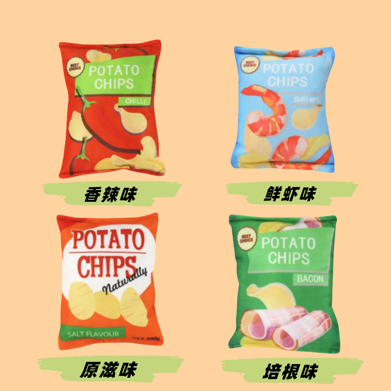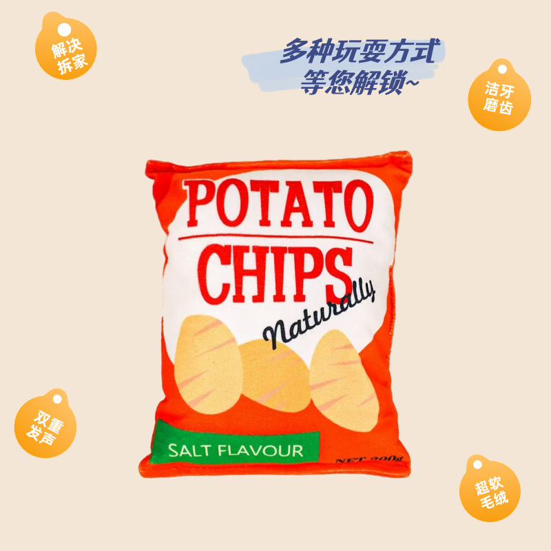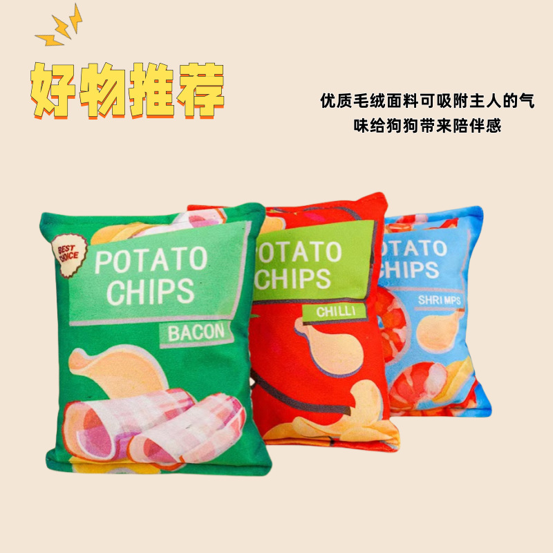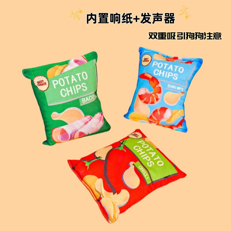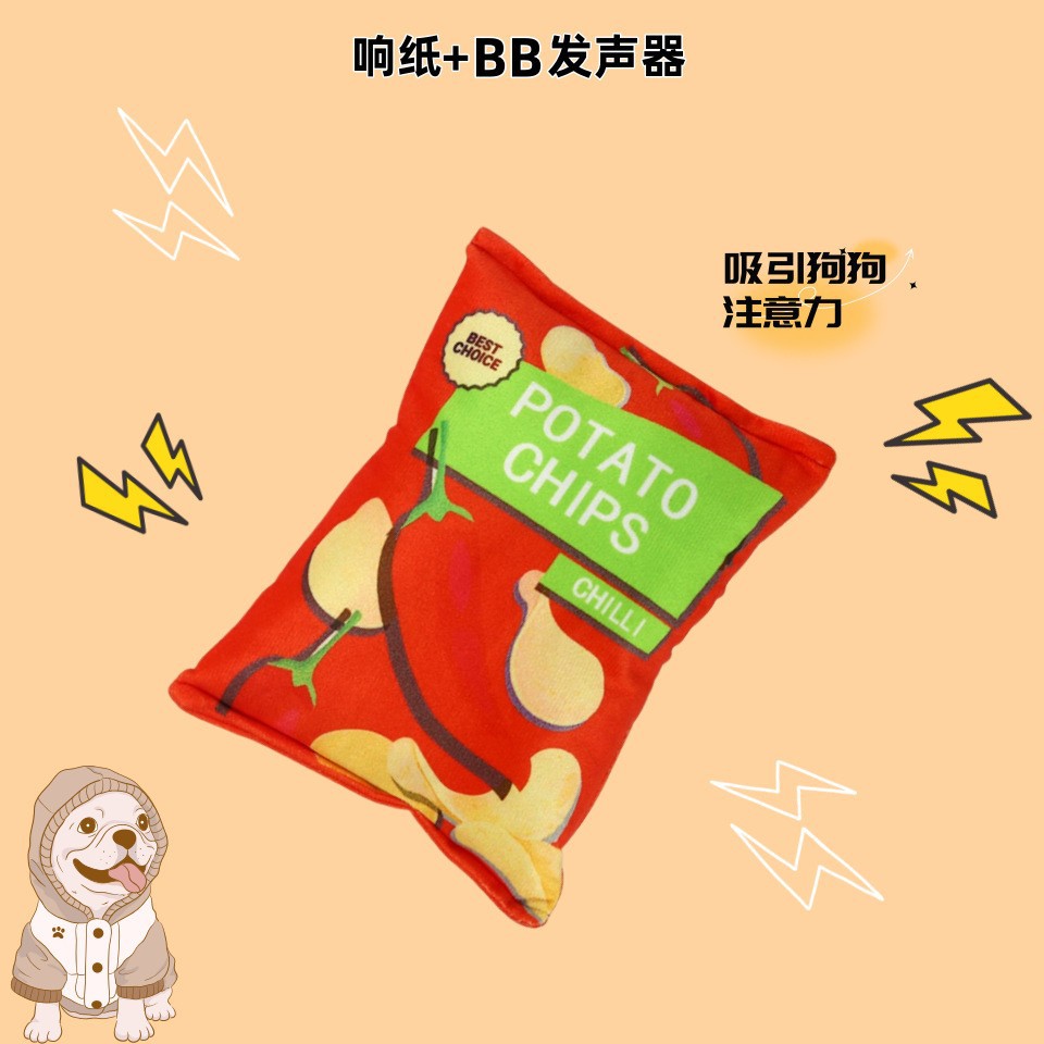 공장 직접 애완 동물 용품 봉제 울리는 종이 감자 칩 개 소리 장난감 치아 청소 중소 개 용품스토어 가기