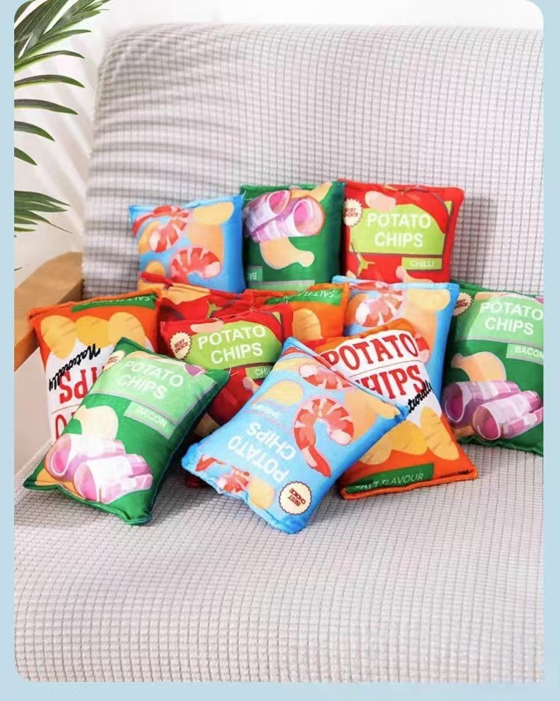 공장 직접 애완 동물 용품 봉제 울리는 종이 감자 칩 개 소리 장난감 치아 청소 중소 개 용품