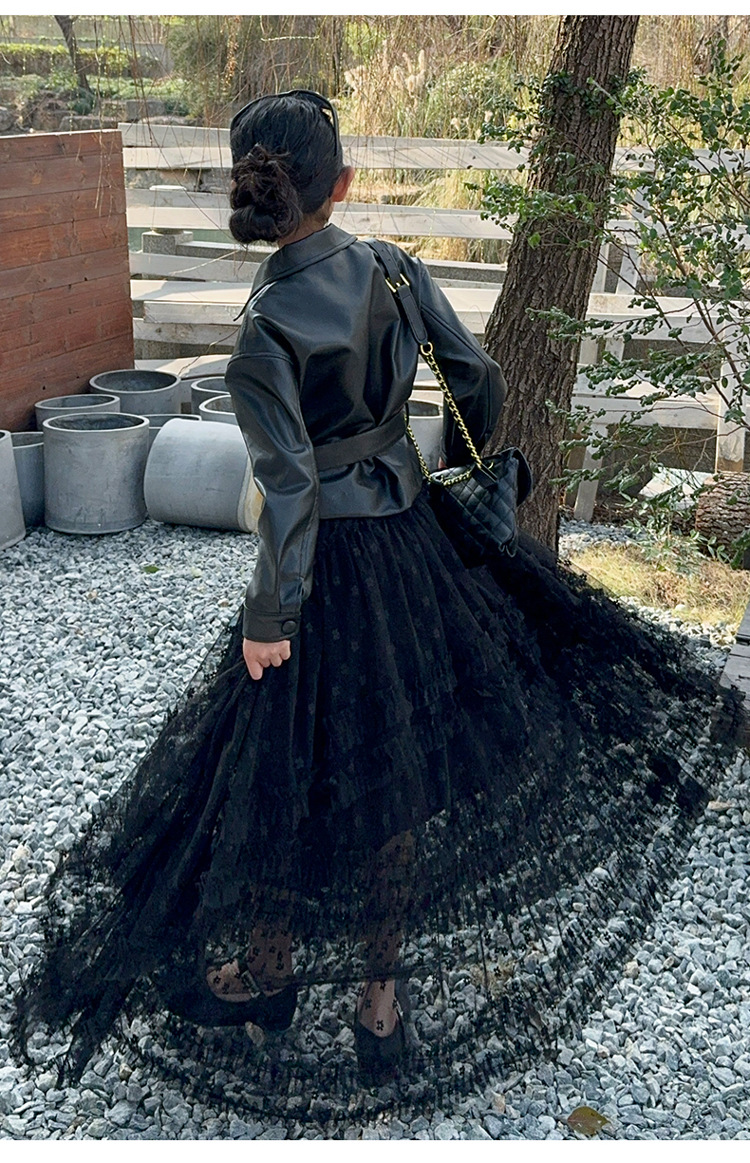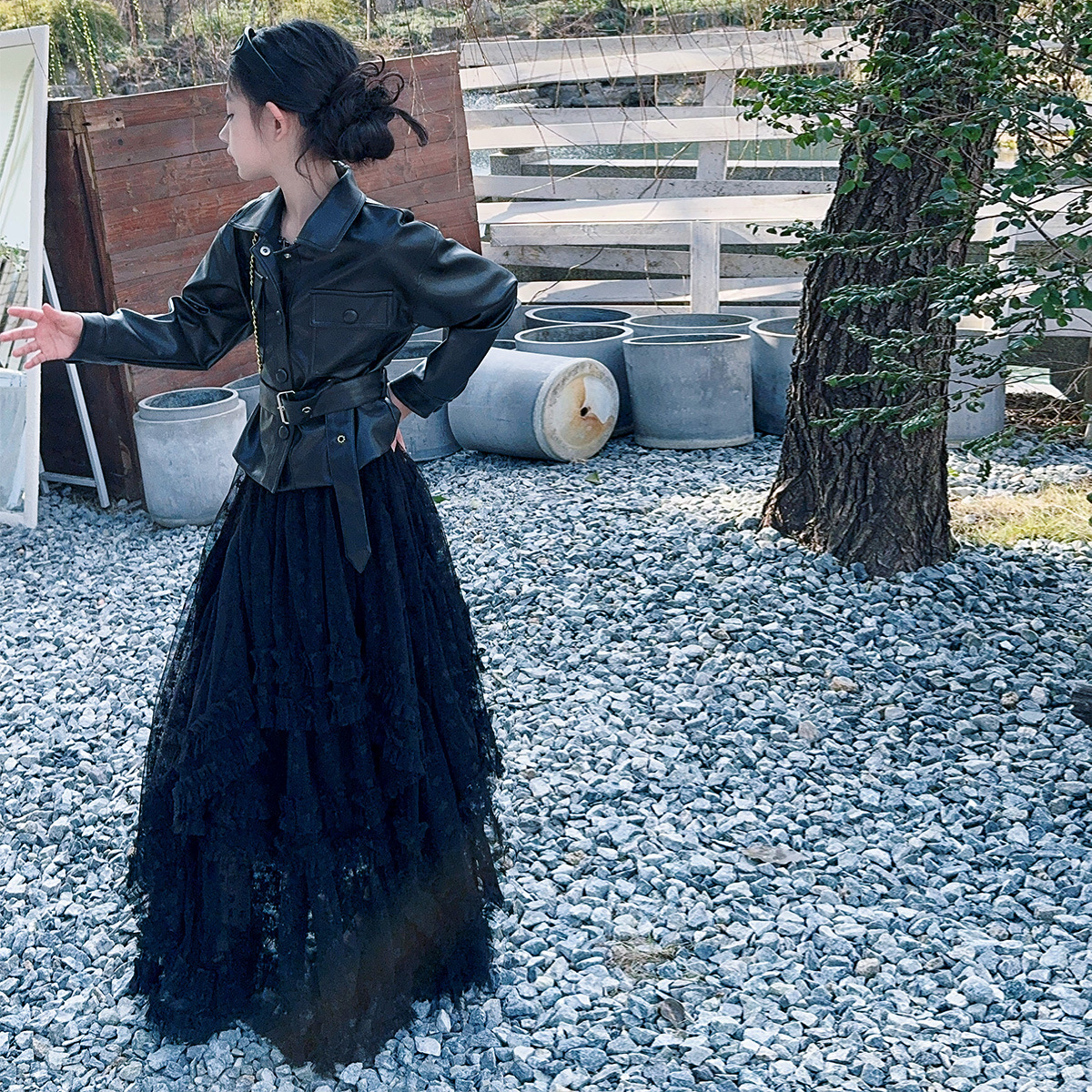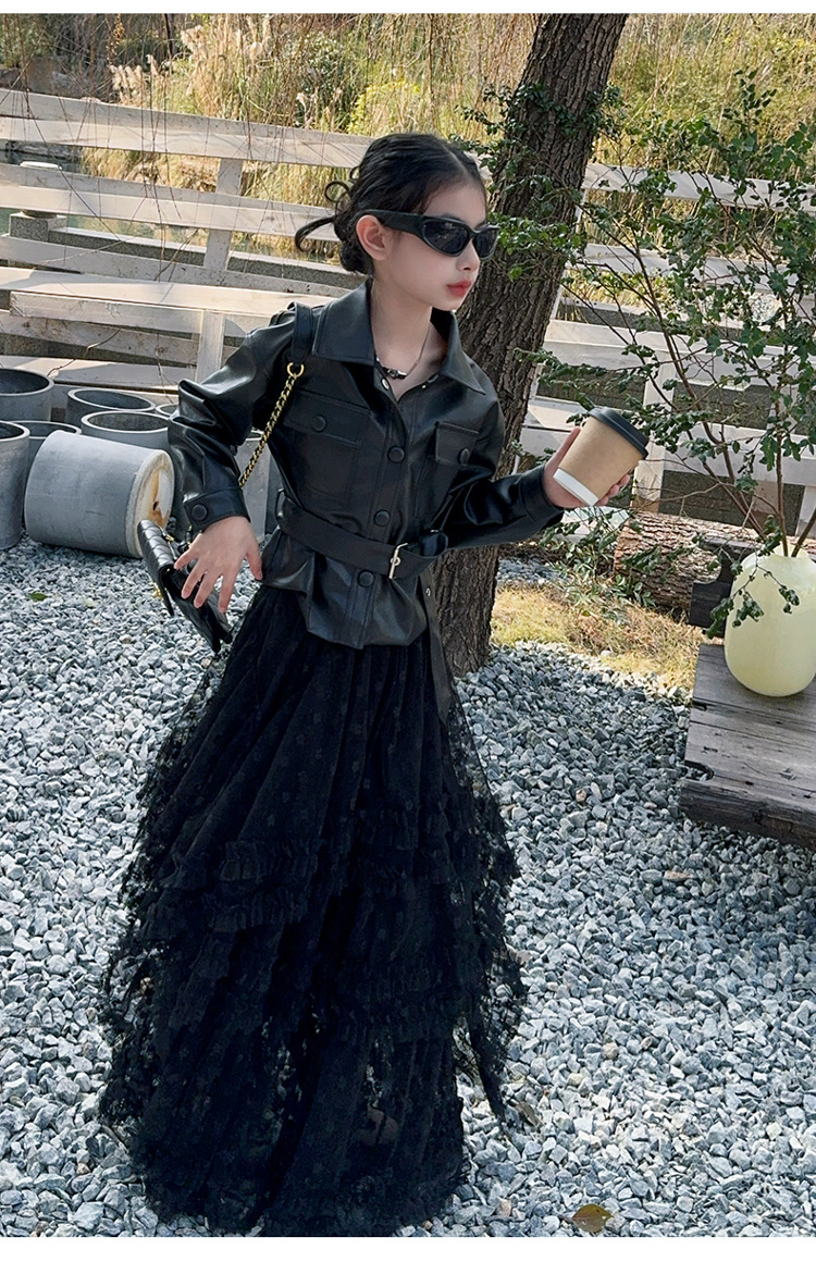소녀 타이트 허리 PU 가죽 자켓 봄 2025 새로운 스타일 중대형 어린이 슬림 핏 슬림 재킷 벨트 트렌디 자켓스토어 가기