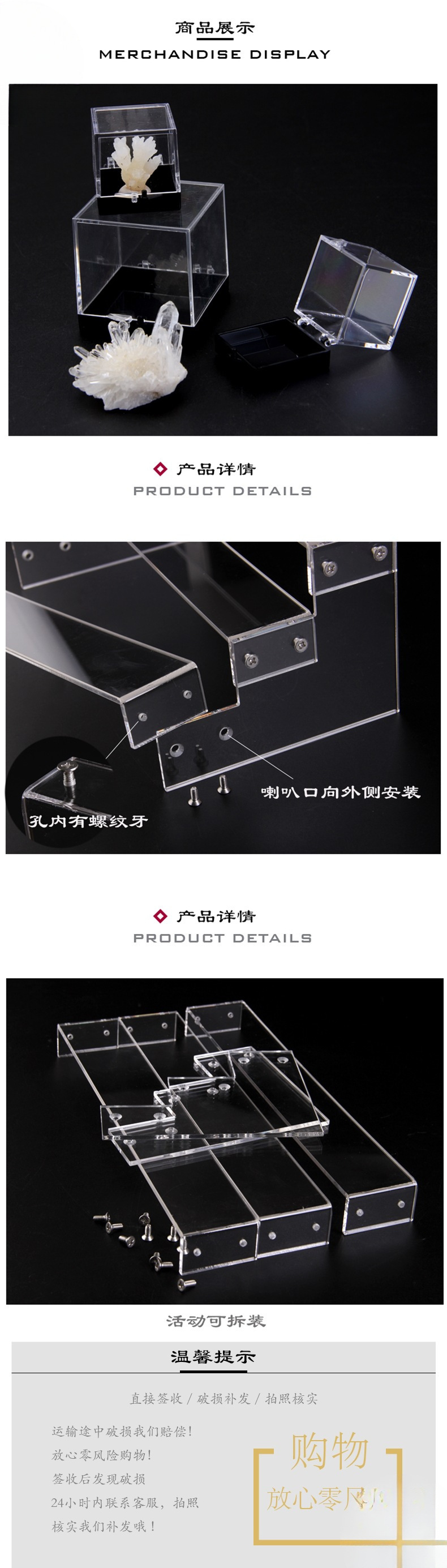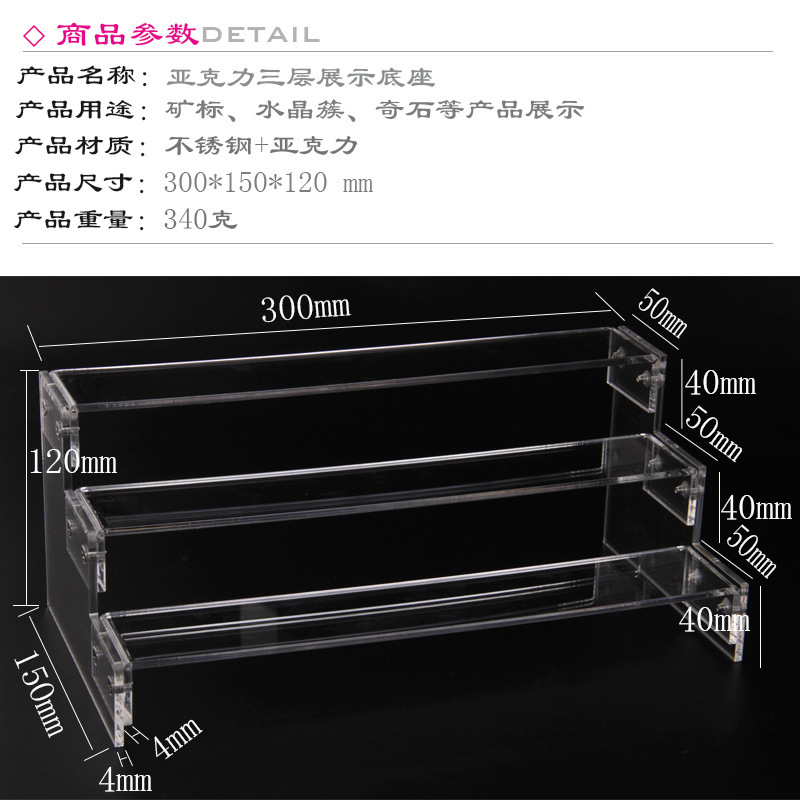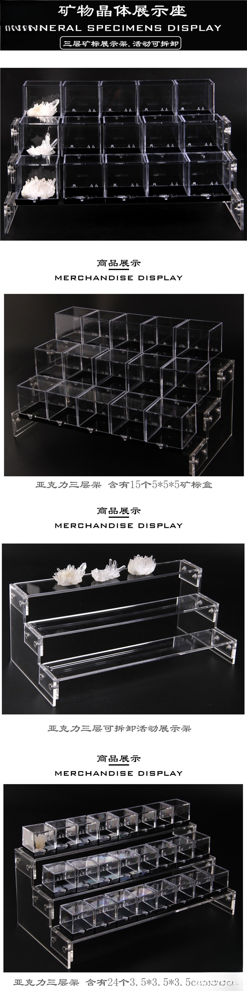 아크릴 투명한 3 층 디스플레이 스탠드 미네랄 크리스탈 광석 표준 상자 원시 광석 바위스토어 가기