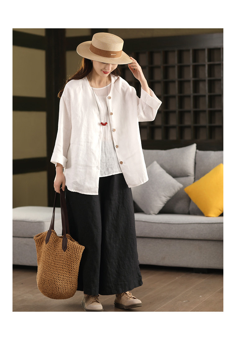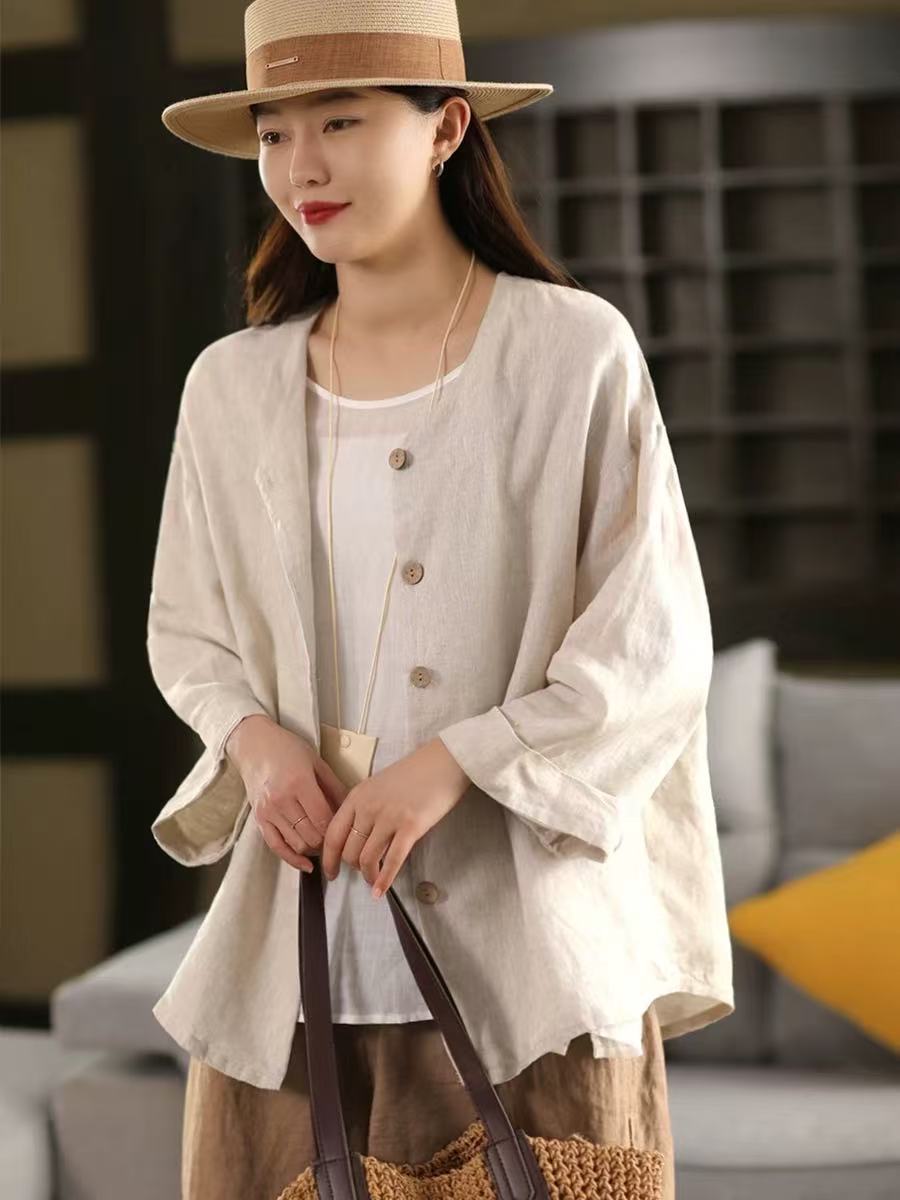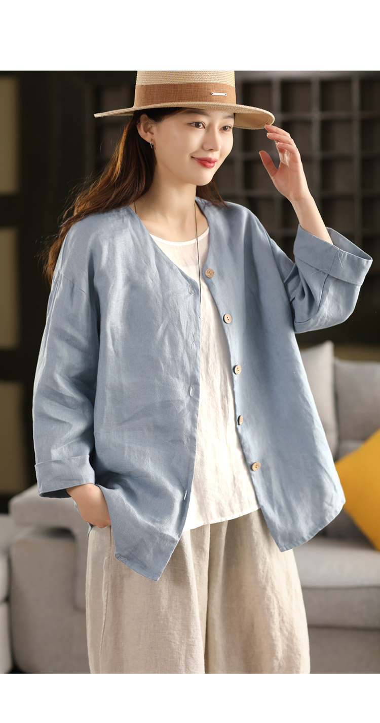 봄 새로운 도착 대마 코트 여성의 예술적 단일 가슴 대마 소재 느슨한 톱 254스토어 가기