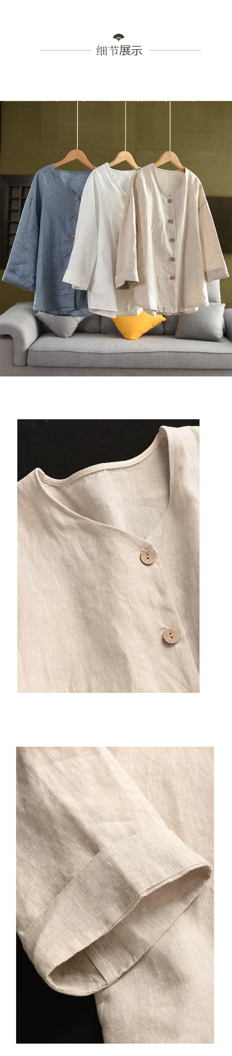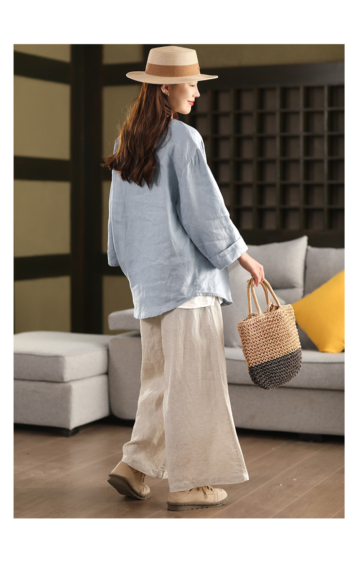 봄 새로운 도착 대마 코트 여성의 예술적 단일 가슴 대마 소재 느슨한 톱 254
