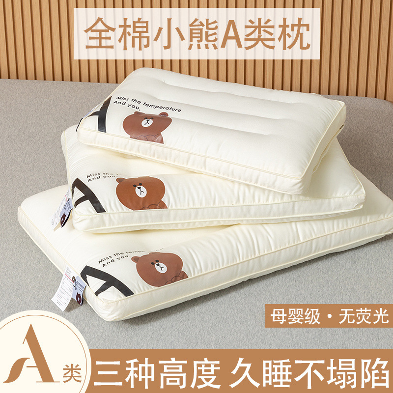 A 급 순수 면 베개 베개 핵심 자궁 경부 척추 보호 수면을위한 특수 학생 가정 어린이 낮은 머리를 가진 남성의 쌍스토어 가기