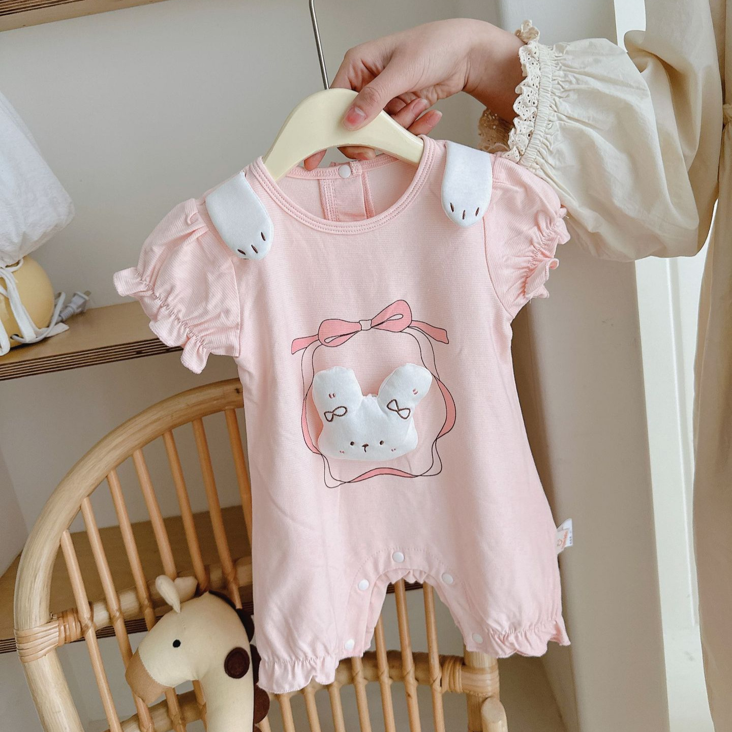 아기 옷 여름 2025 새로운 남자와 여자의 아기 반팔 몸 옷 여름 귀여운 서양식 하카야마 등반 옷스토어 가기