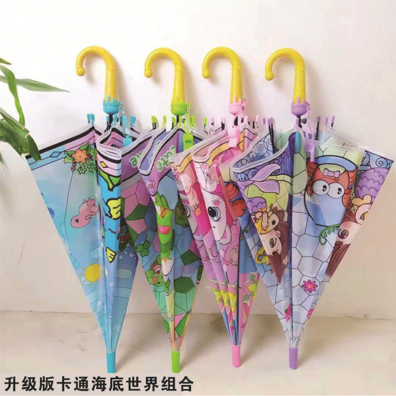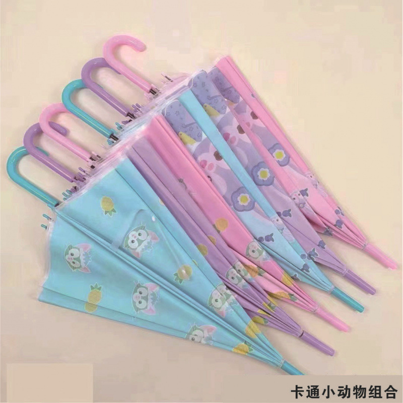 창조적 인 작은 신선한 어린이 성인 만화 학생 빛 안전 8 부 자동 긴 손잡이 우산 도매 푸시스토어 가기