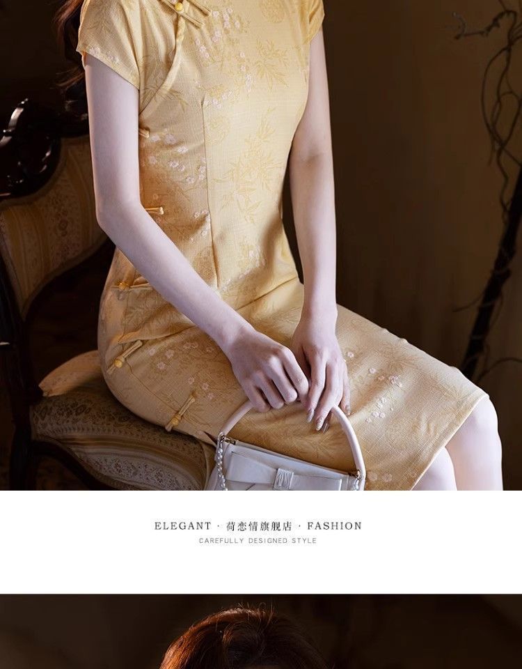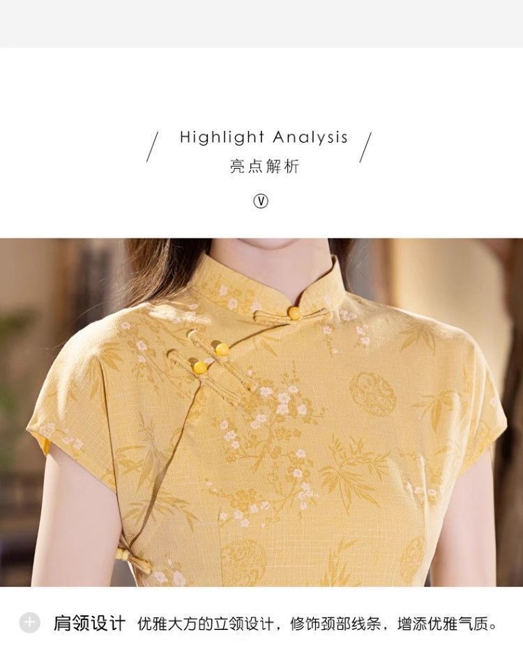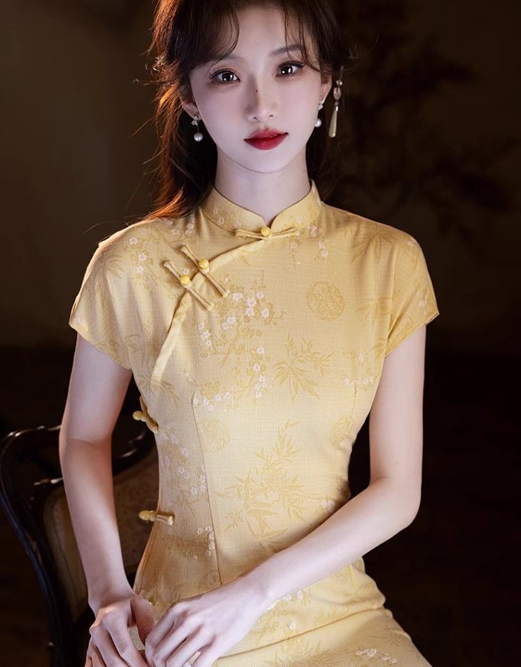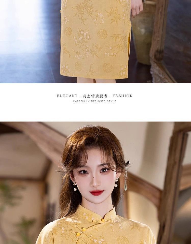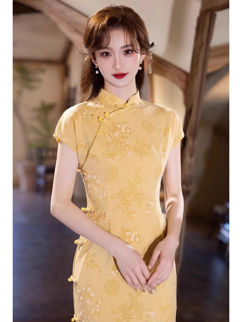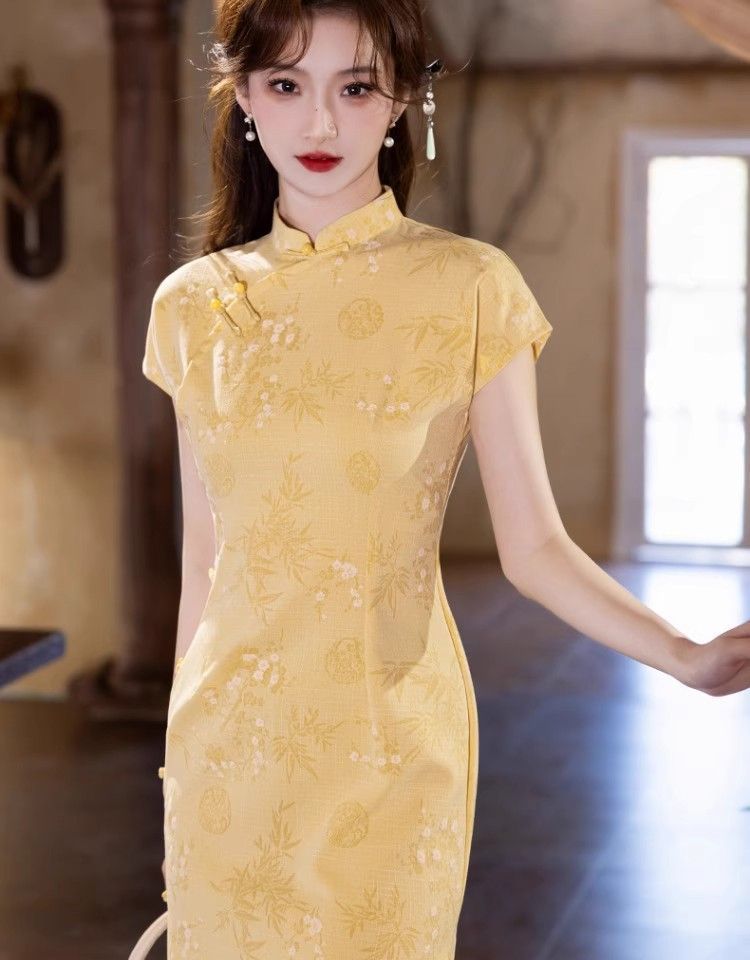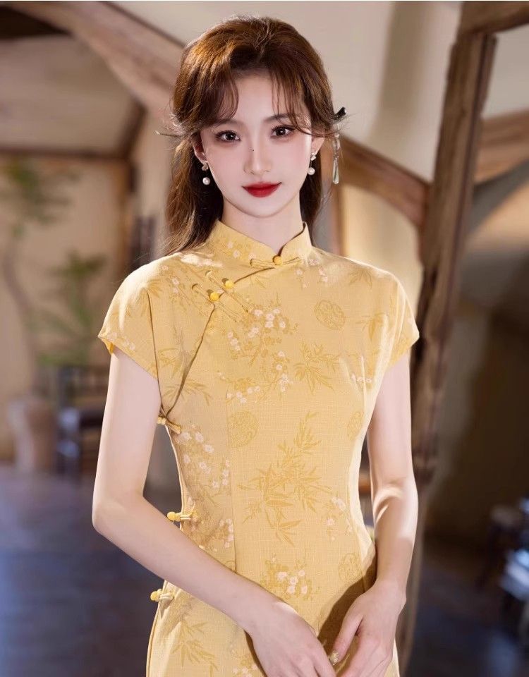 [점포 판매] 노란 치삼 2025 새 개량된 어린 소녀 여름 새 중국 원피스 날