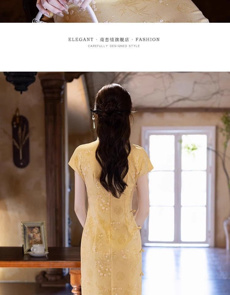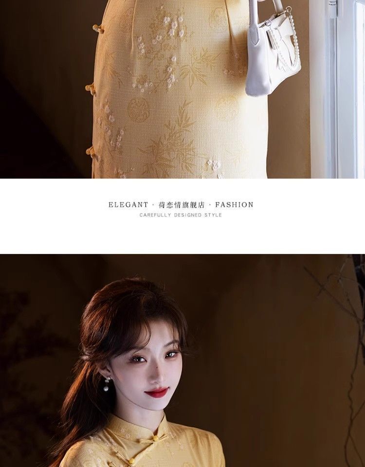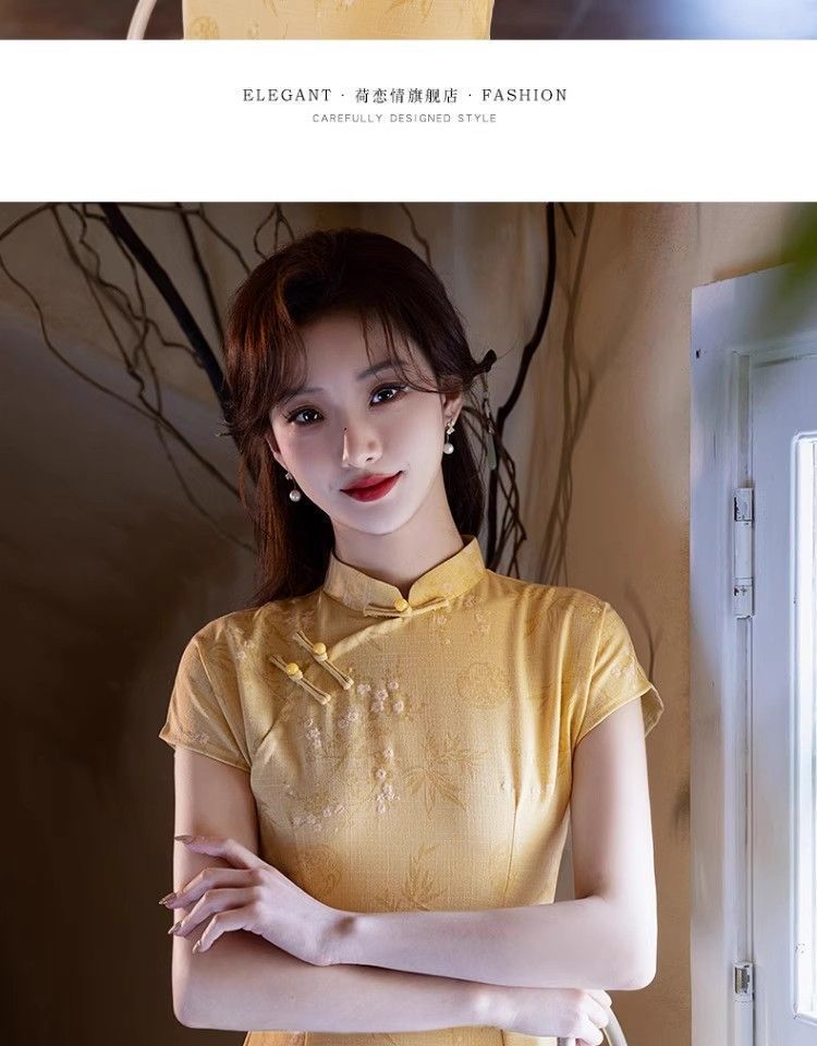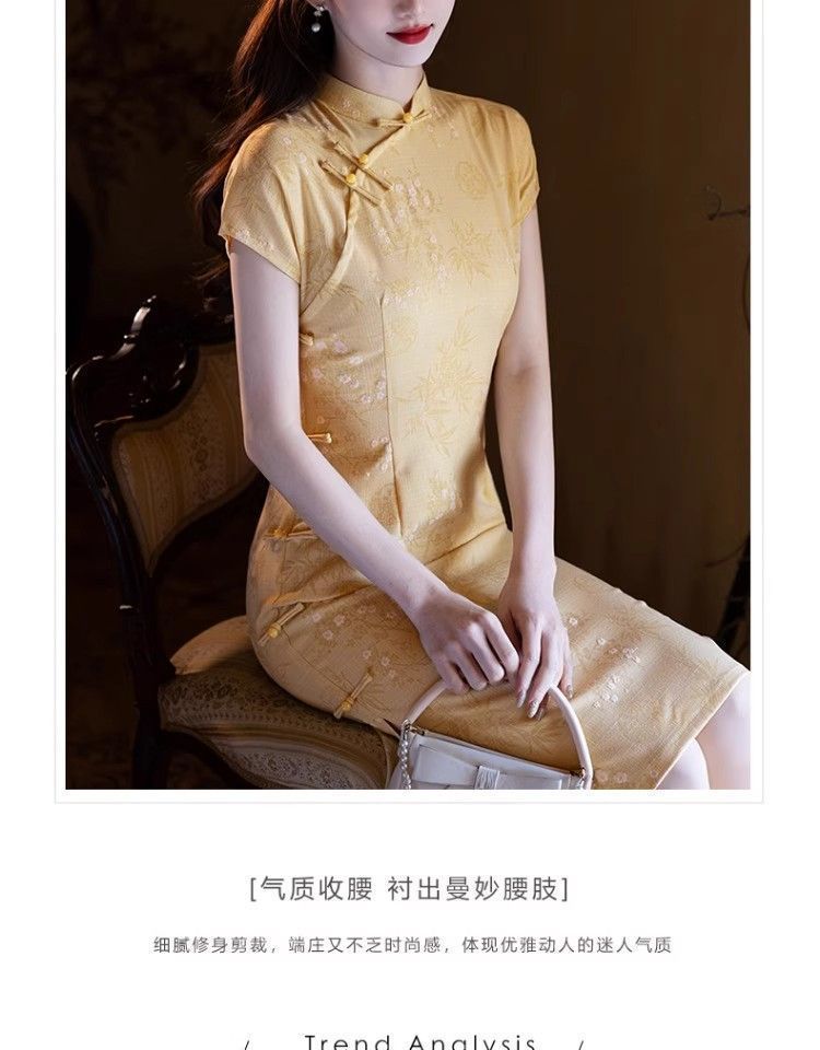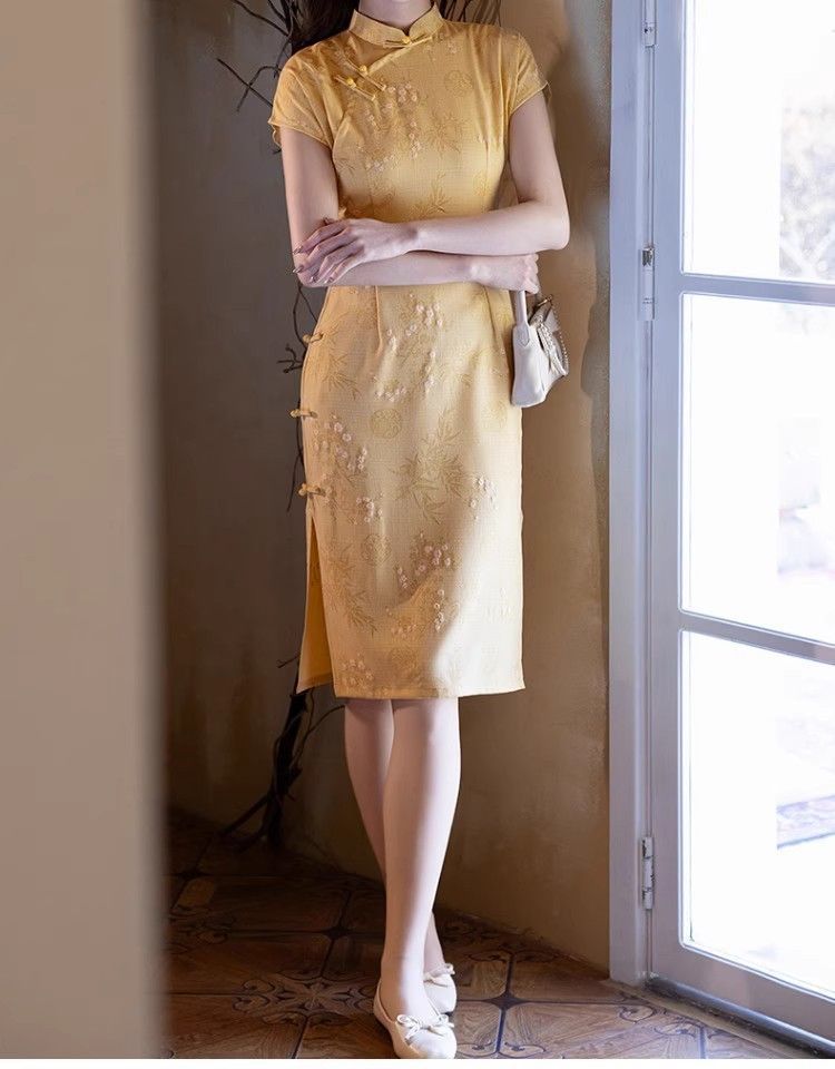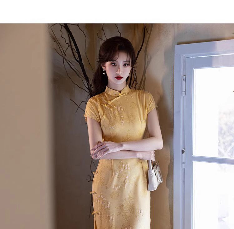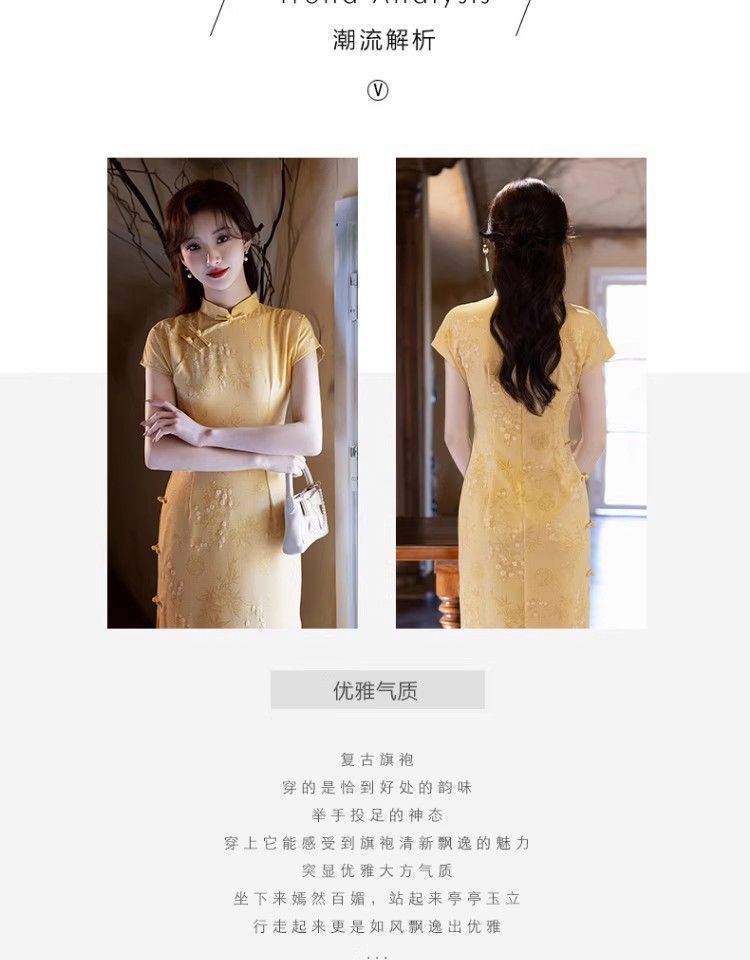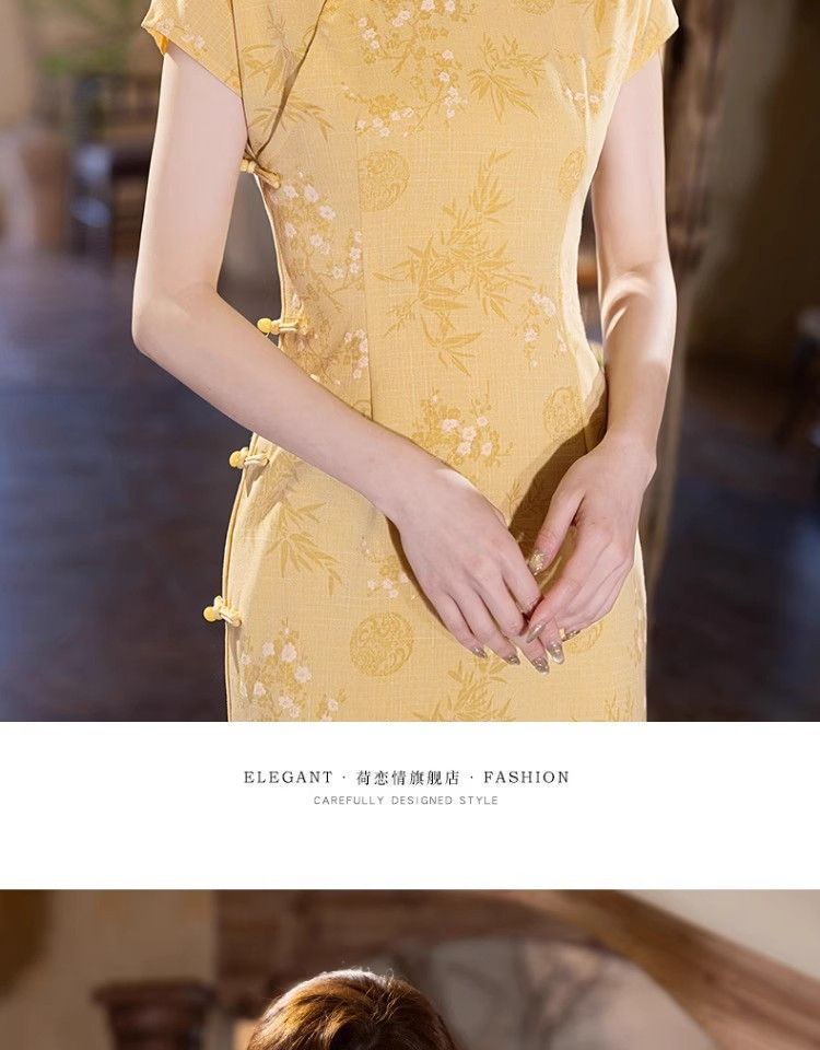 [점포 판매] 노란 치삼 2025 새 개량된 어린 소녀 여름 새 중국 원피스 날