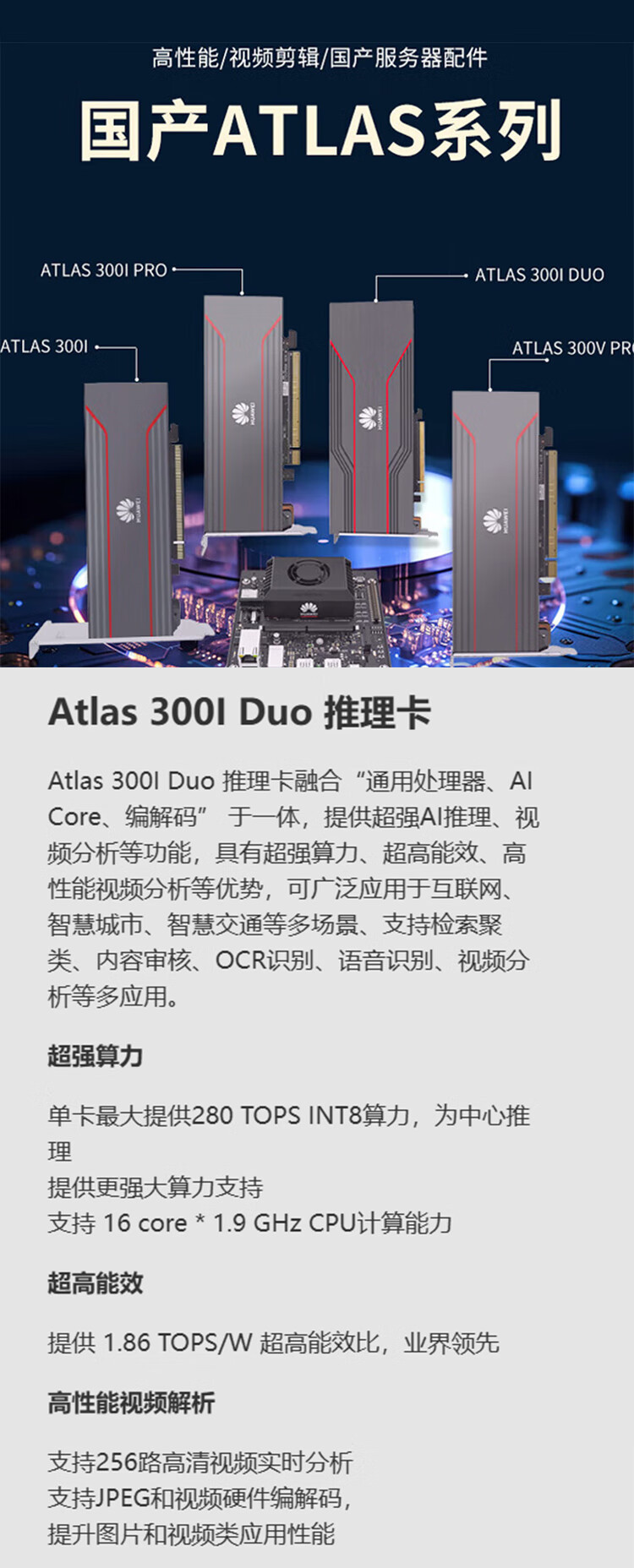 昇腾Atlas300i duo 48GB 96GB 280T 대형 모델 고성능 국산 AI 추론 카드스토어 가기