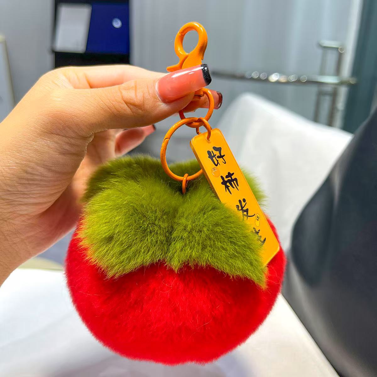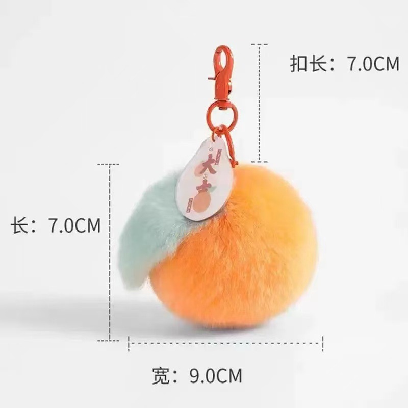 행운의 미래는 밝습니다. 작은 오렌지 자동차 열쇠 펜던트 오렌지 동반자 선물 가방 펜던트 렉스 토끼 모피 공 선물