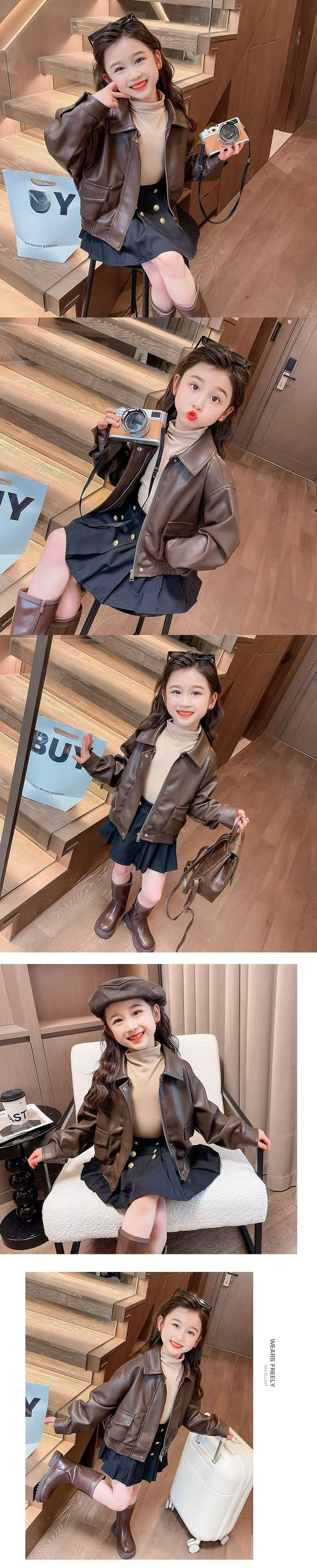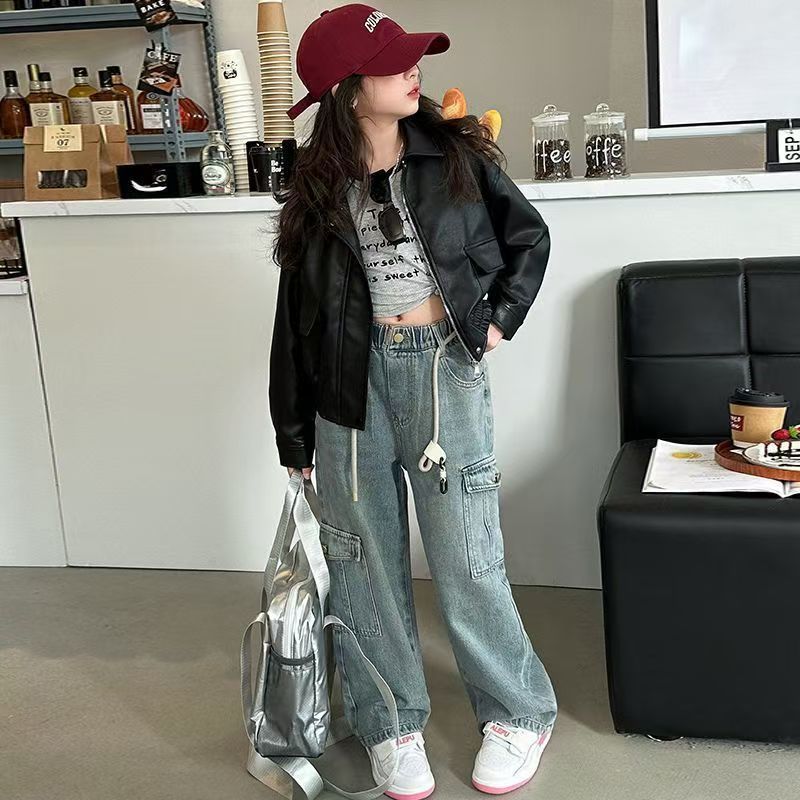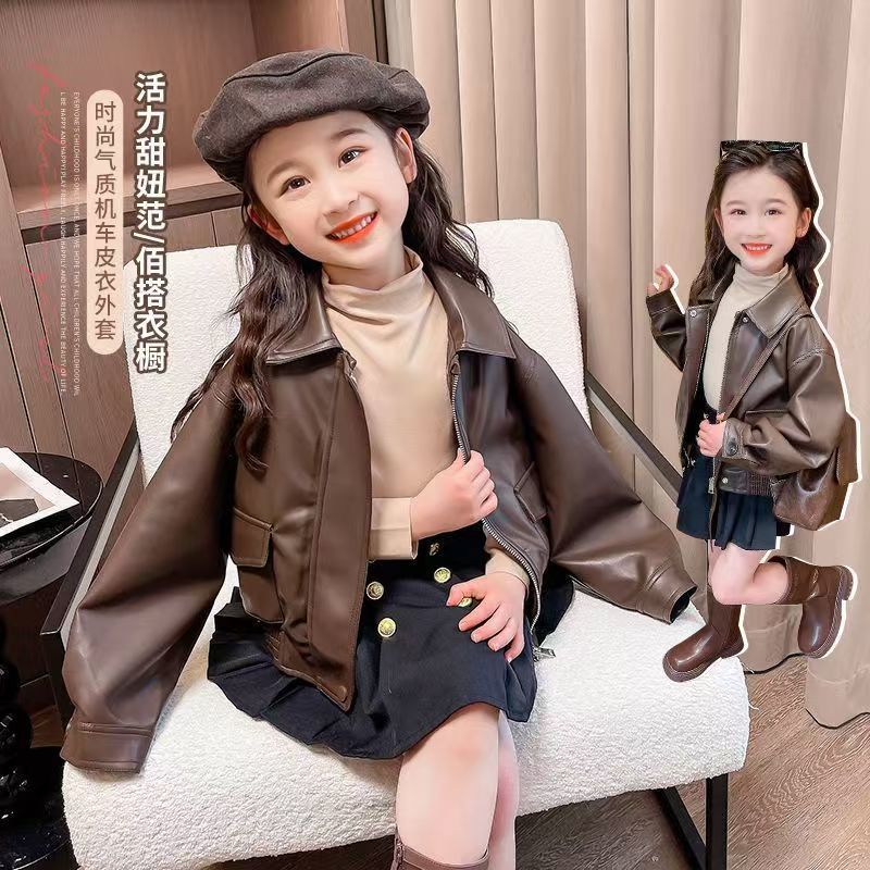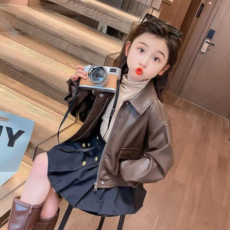 소녀 인터넷 인기있는 봄과 가을 멋진 가죽 코트 어린이 서양식 가을 2025 새로운 유행 여름 거리 탑스토어 가기