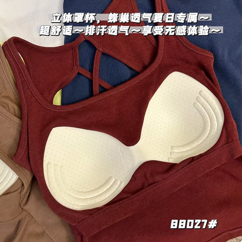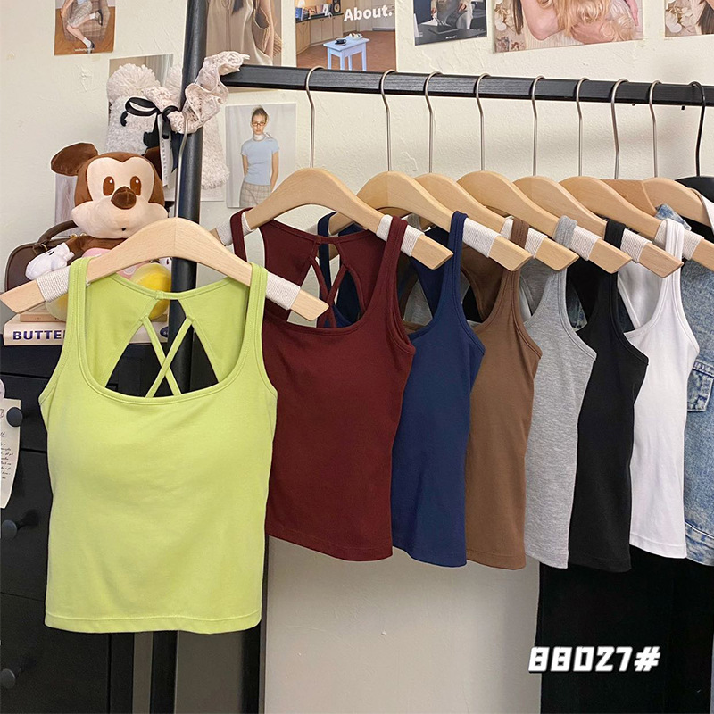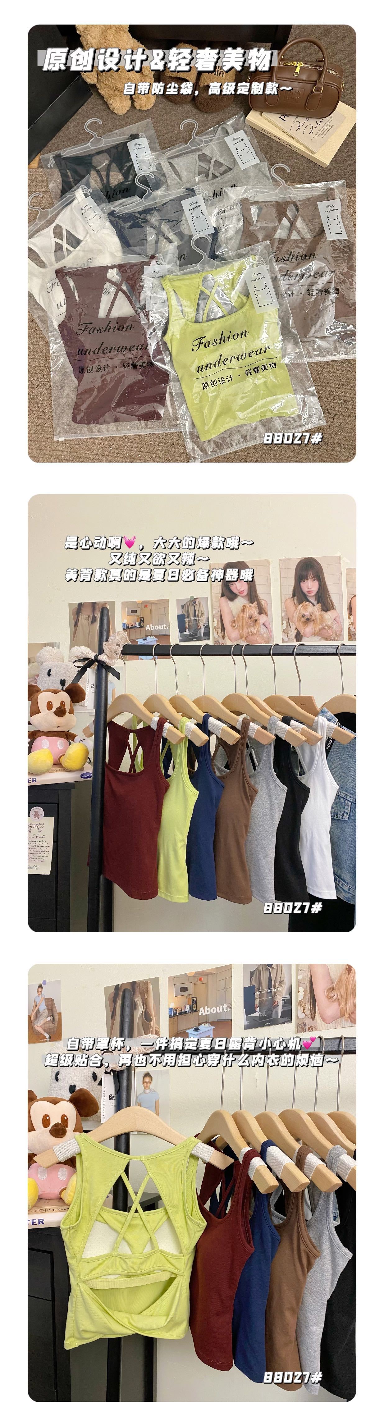 88027 # 간단한 단색 크로스 할로우 아웃 카미 솔 섹시 고정 컵 조커베이스 재킷스토어 가기