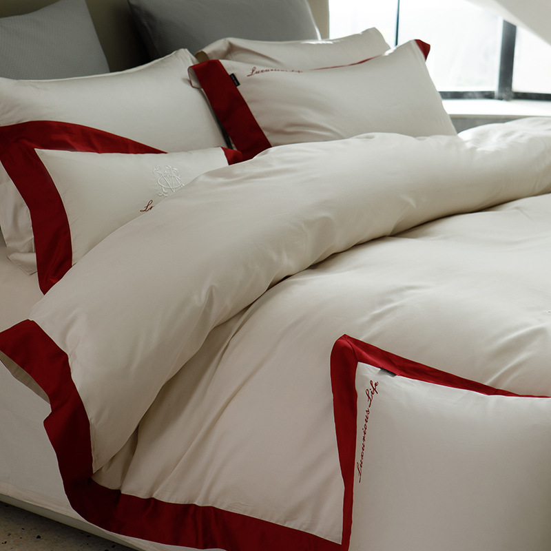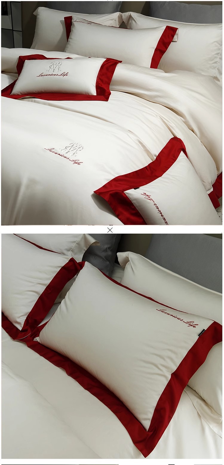 가벼운 럭셔리 자수 긴 스테이플 코튼 4 피스 세트 말 코튼 간단한 색상 일치 코튼 퀼트 커버 침대 시트