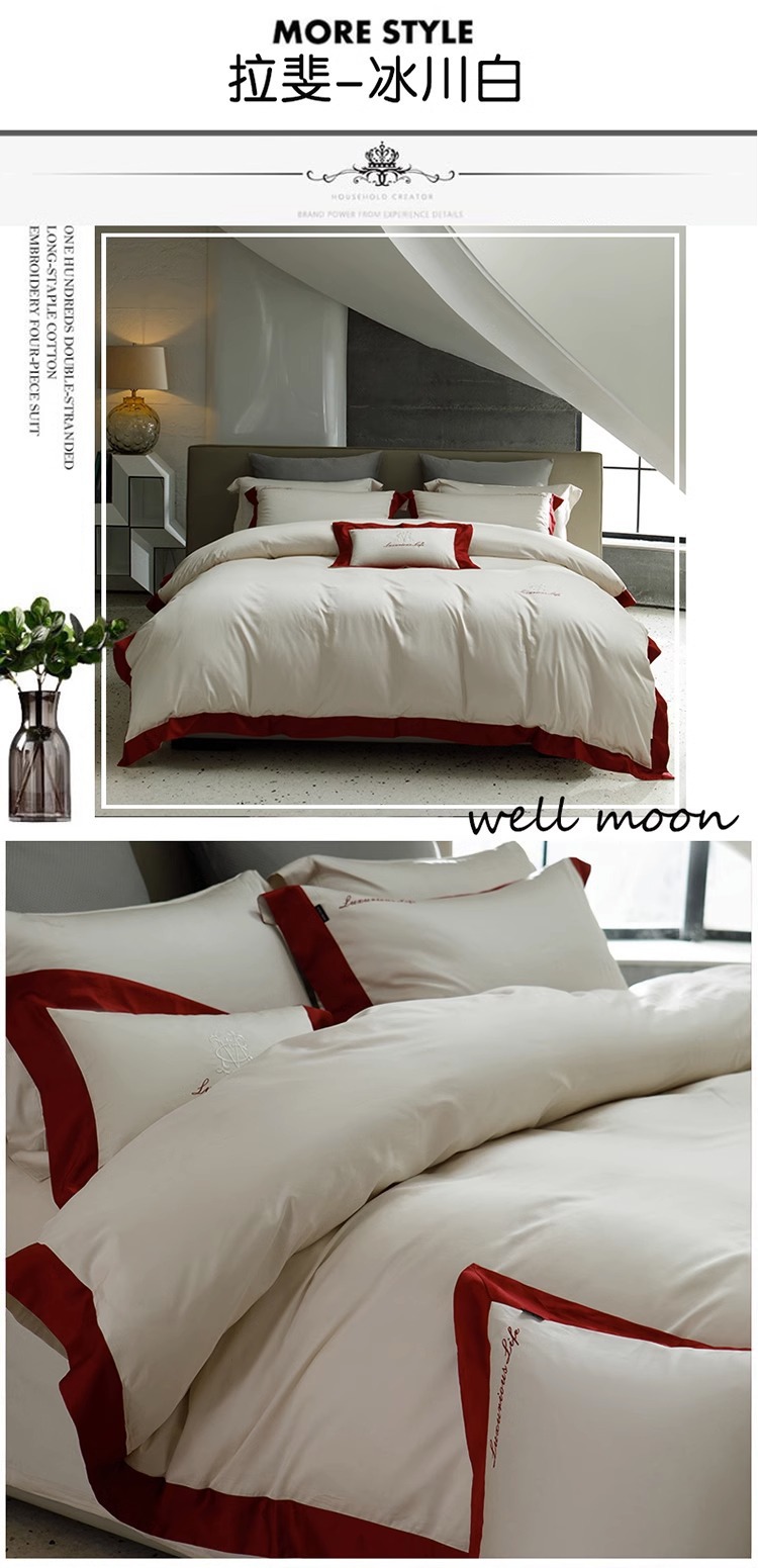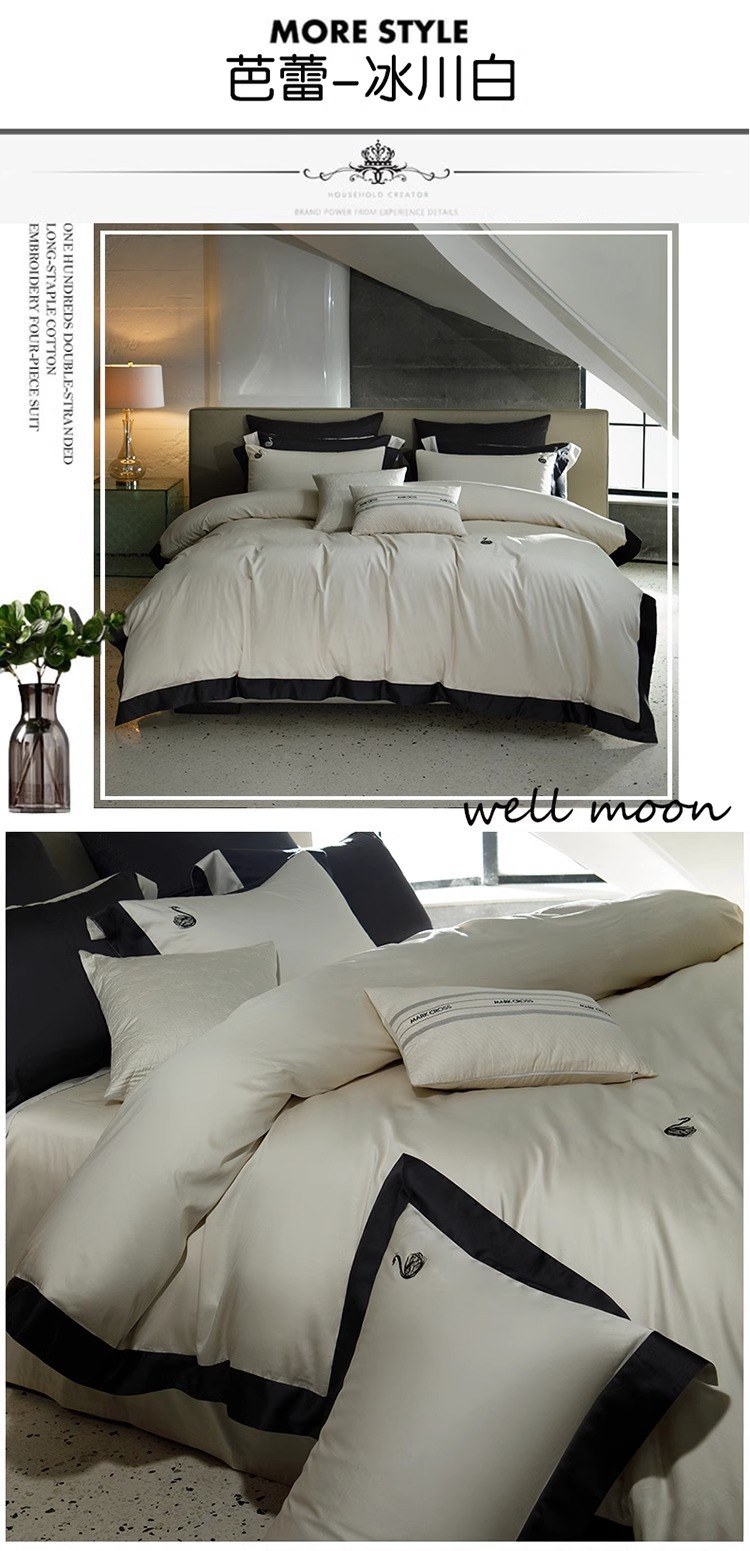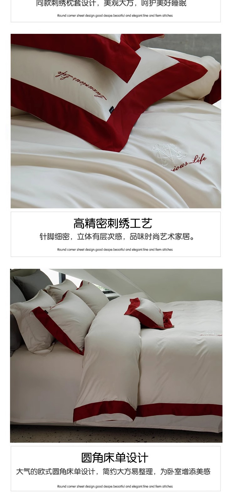 가벼운 럭셔리 자수 긴 스테이플 코튼 4 피스 세트 말 코튼 간단한 색상 일치 코튼 퀼트 커버 침대 시트스토어 가기