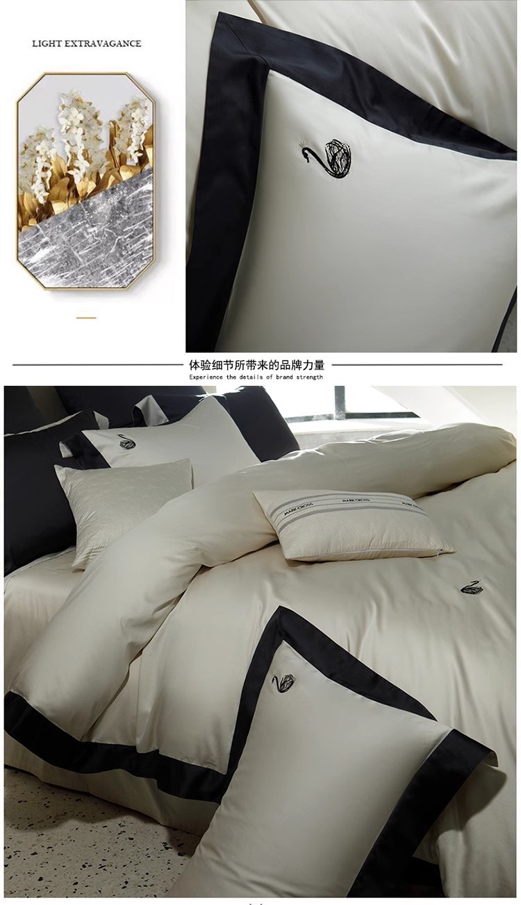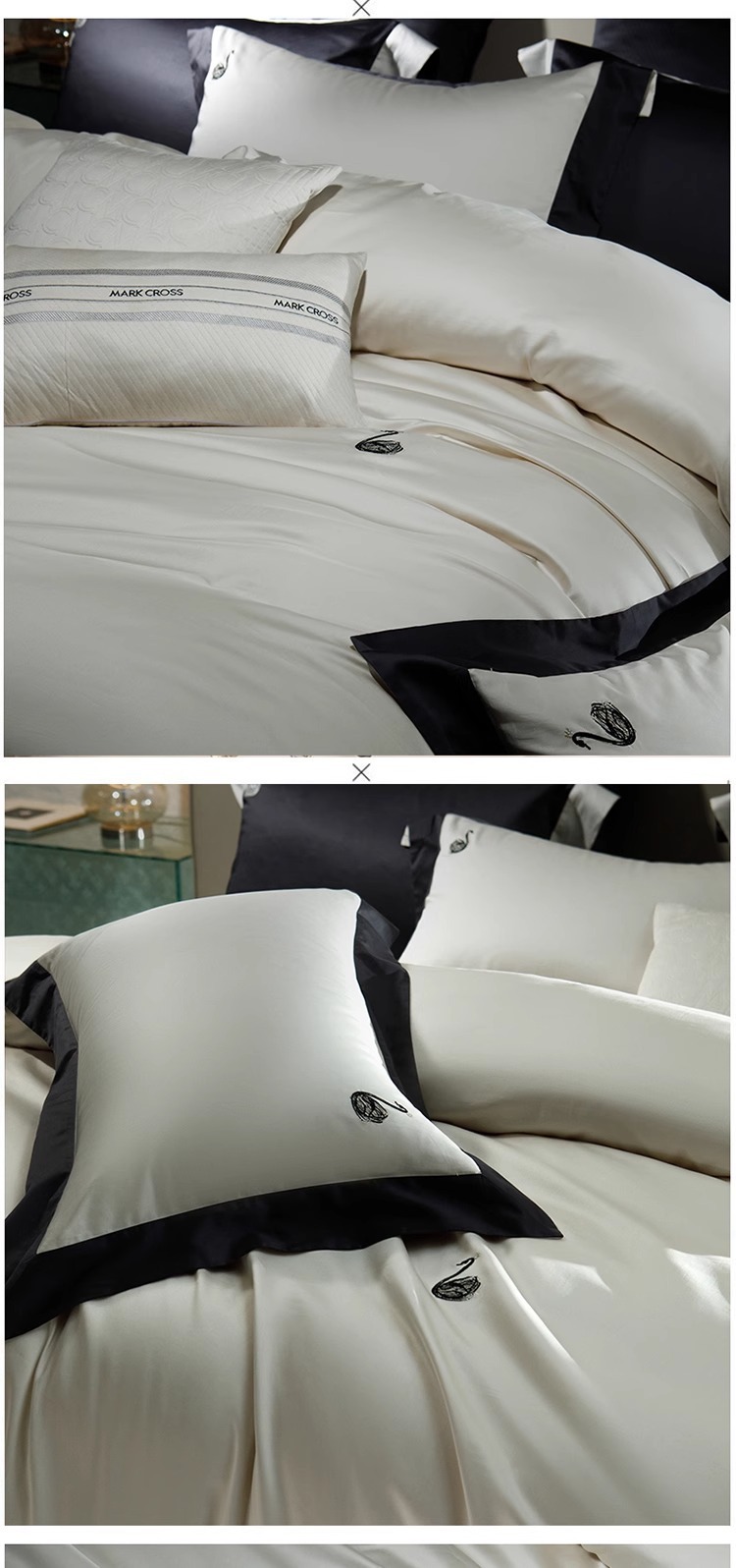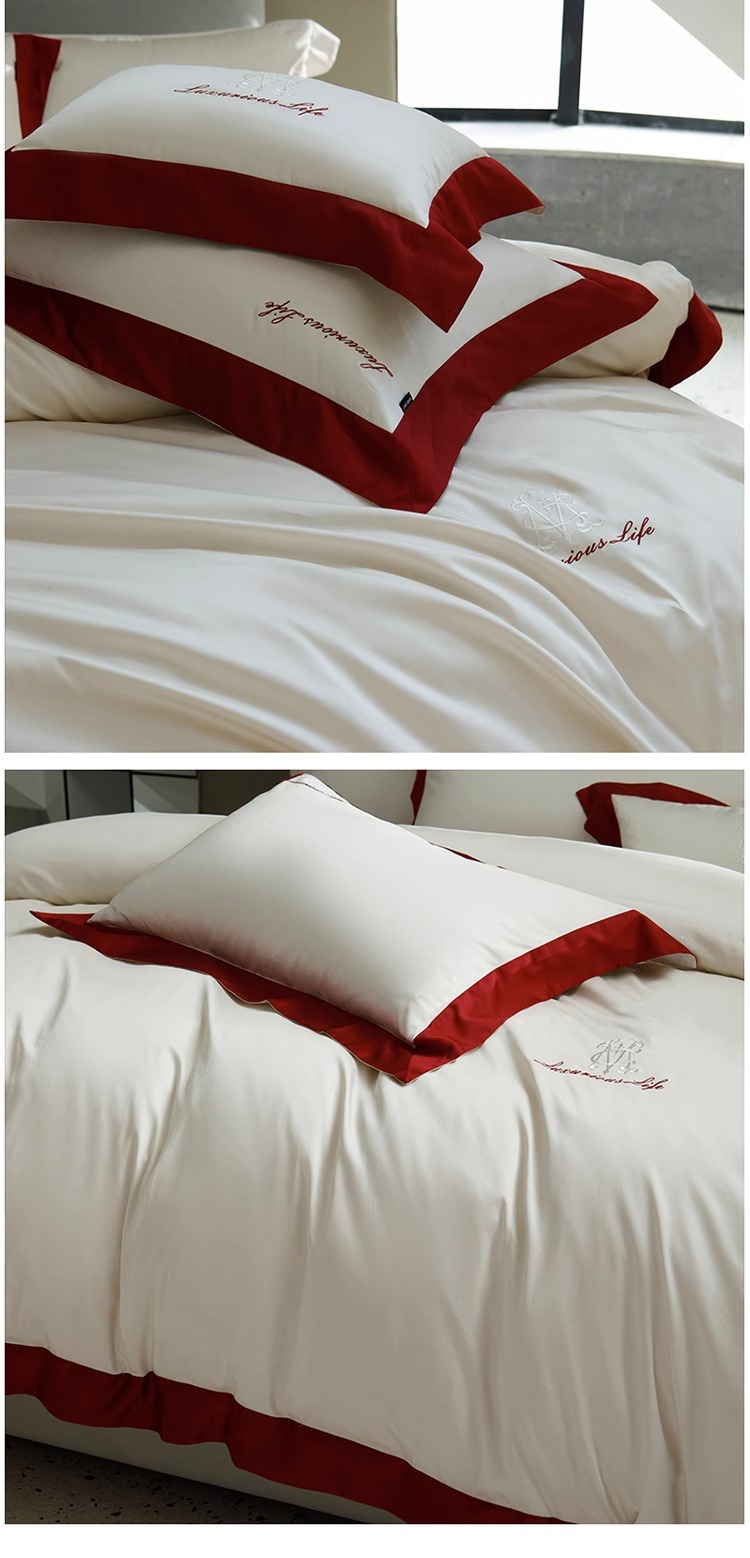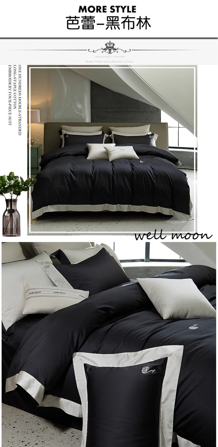 가벼운 럭셔리 자수 긴 스테이플 코튼 4 피스 세트 말 코튼 간단한 색상 일치 코튼 퀼트 커버 침대 시트스토어 가기