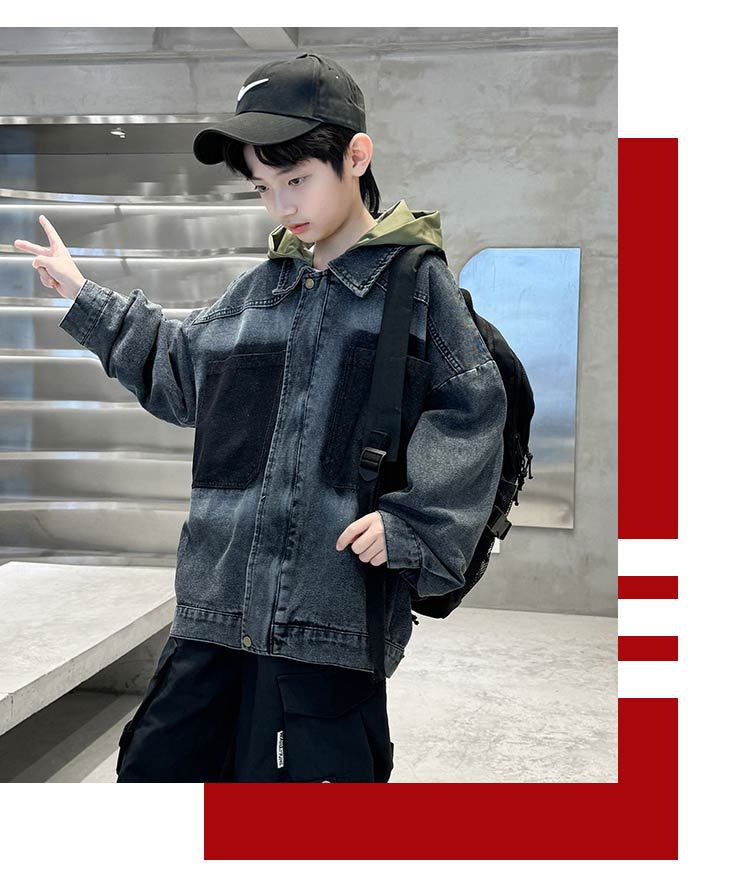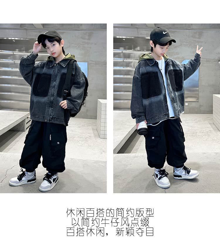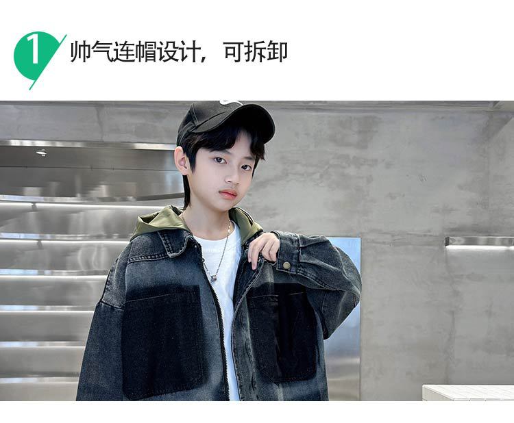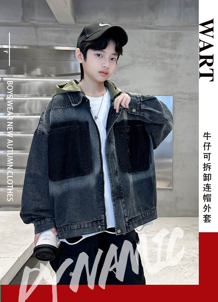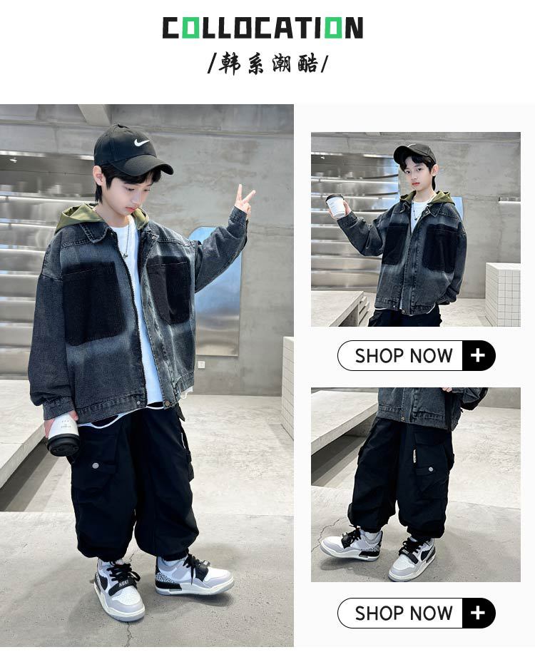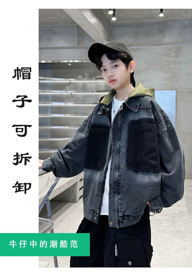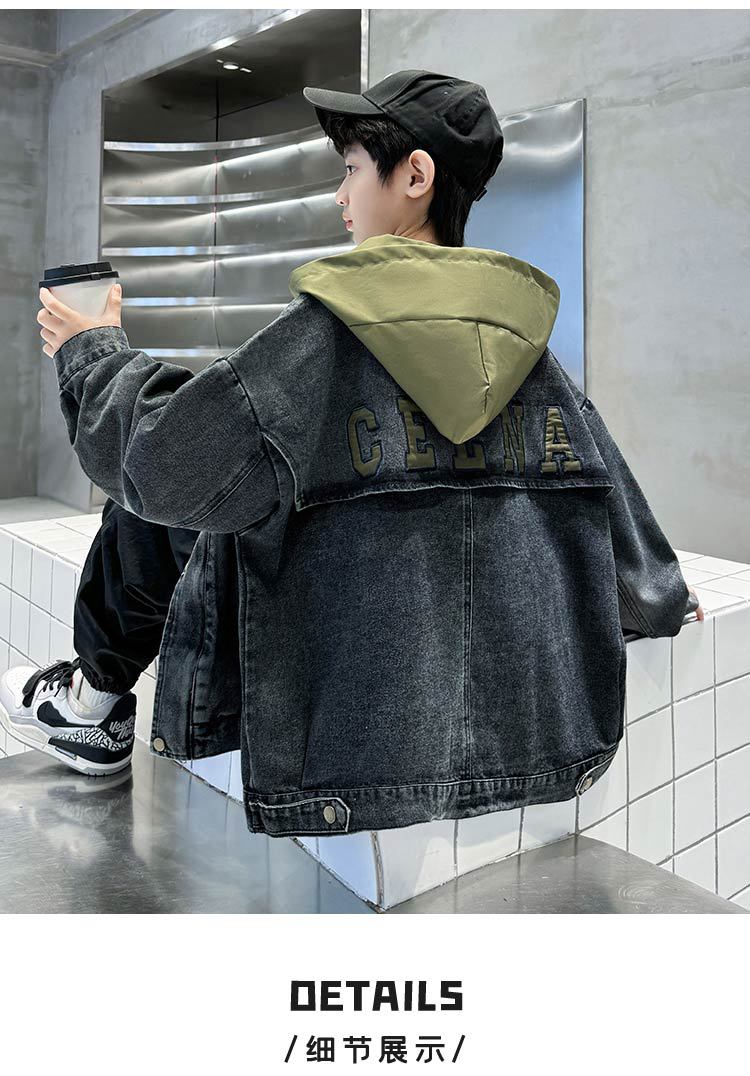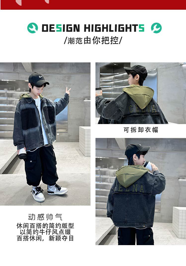 소년 데님 코트 봄과 가을 튀긴 거리 어린이 인터넷 연예인 2025 가을 새로운 중대형 어린이 최고 소년 패션 브랜드스토어 가기