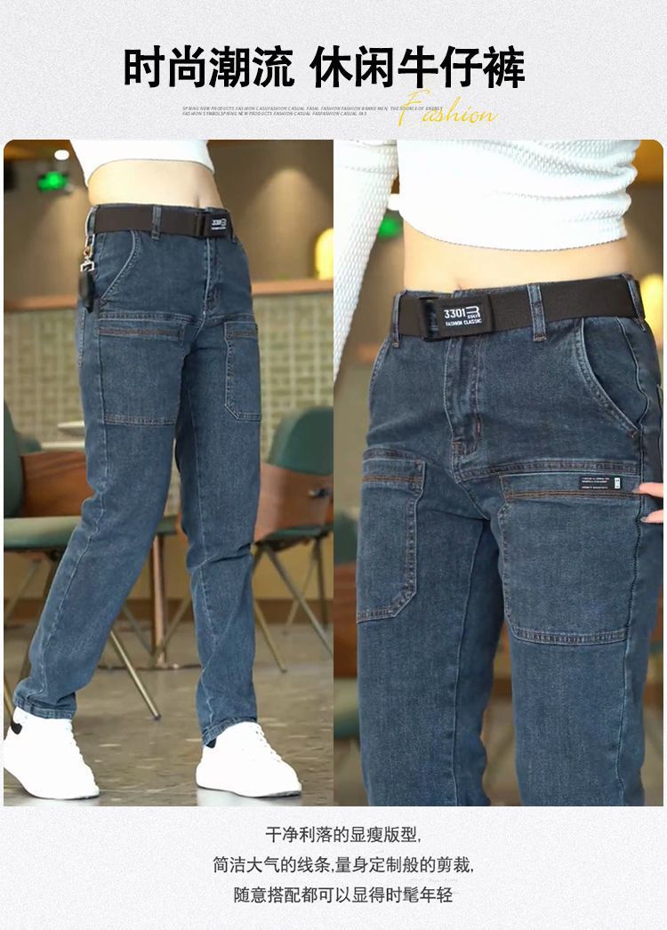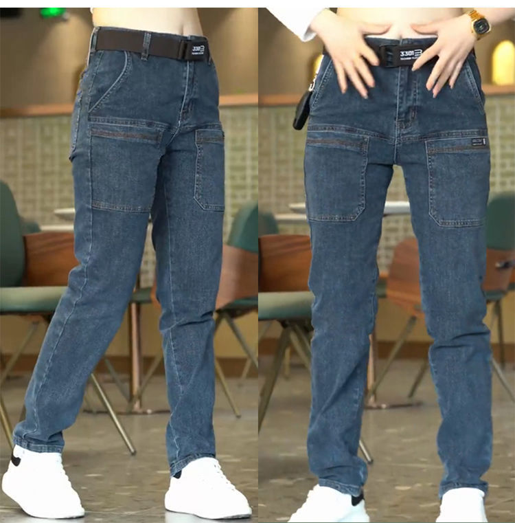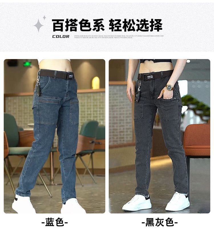 2025 스트레이트 레그 청바지 남자 여름 얇은 트렌디 올 매치 레그 팬츠 스트레치 슬리밍 6 포켓 캐주얼 바지스토어 가기
