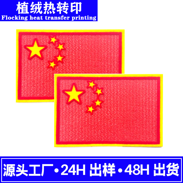 중국 국기 열전달 플로킹 핫 스탬핑 라벨 트렌디 브랜드 의류 액세서리 다다미 플로킹 핫 스탬핑 로고 가슴 라벨 재고 있음스토어 가기