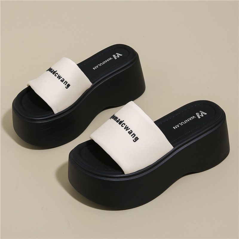 스몰 사이즈 33 높이 증가 두꺼운 슬리퍼 여자 여름 하이힐 슬라이드 2025 새로운 올매치 캐주얼 비치 여성용 슬리퍼