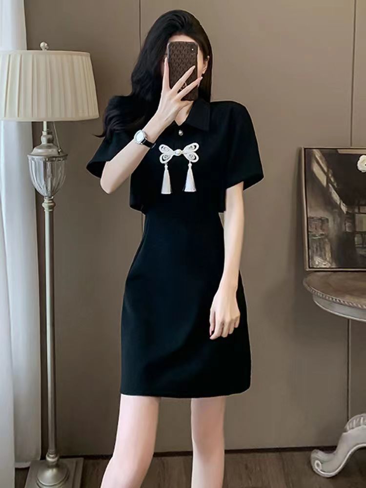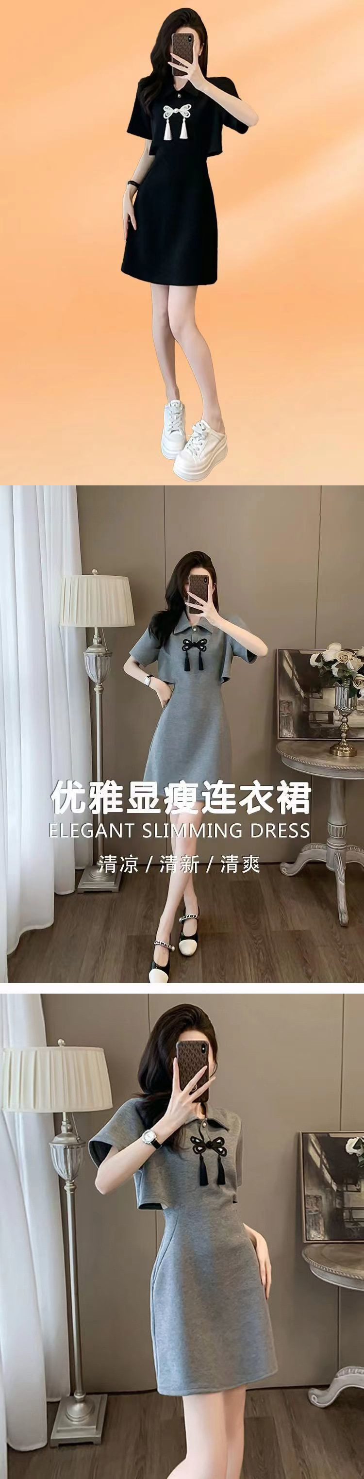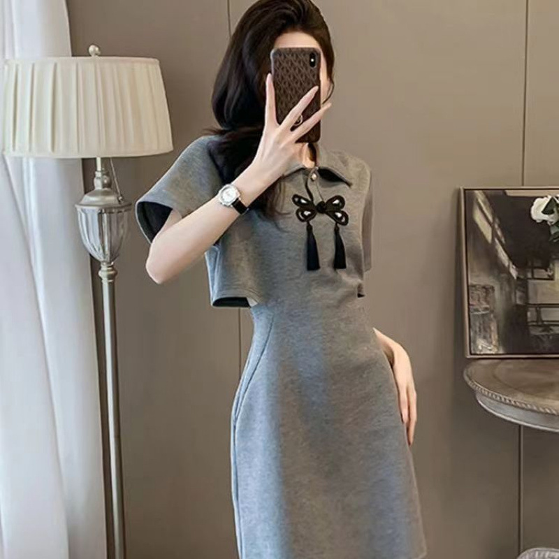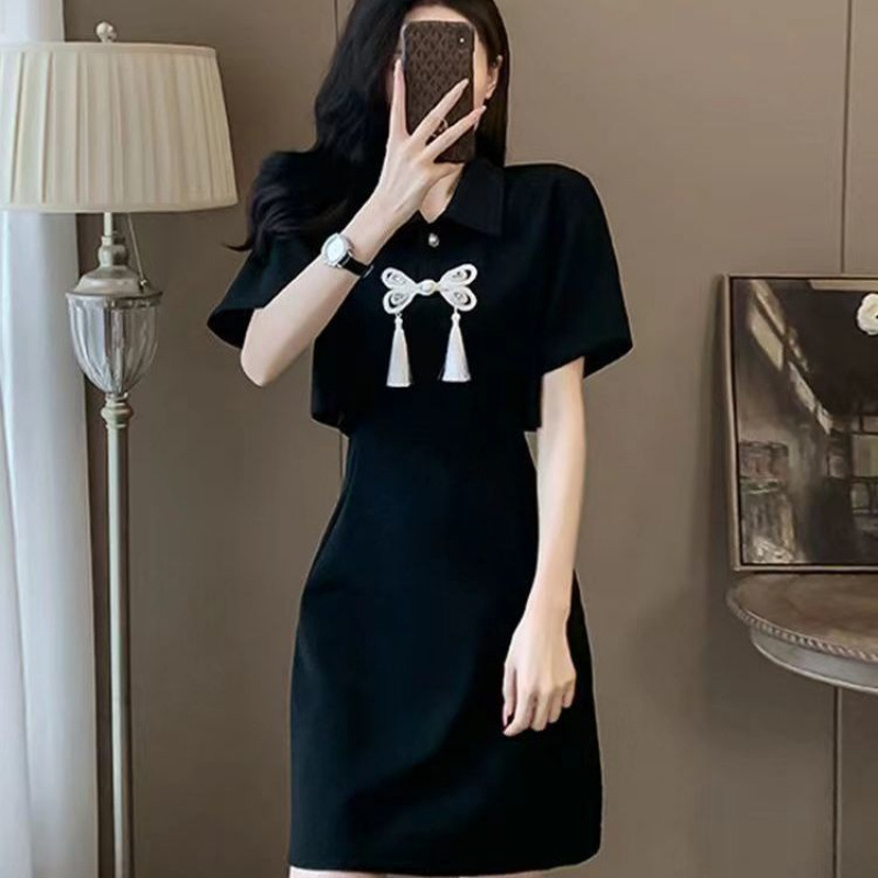 Guofeng 빈티지 폴로 칼라 원피스 여성 여름 원피스 새로운 하이 엔드 센스 캐주얼 슬림 룩 에이지 감소 셔츠 스커트