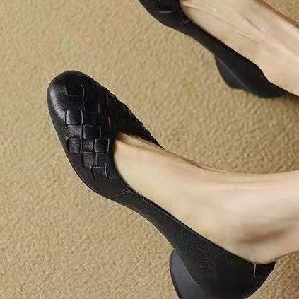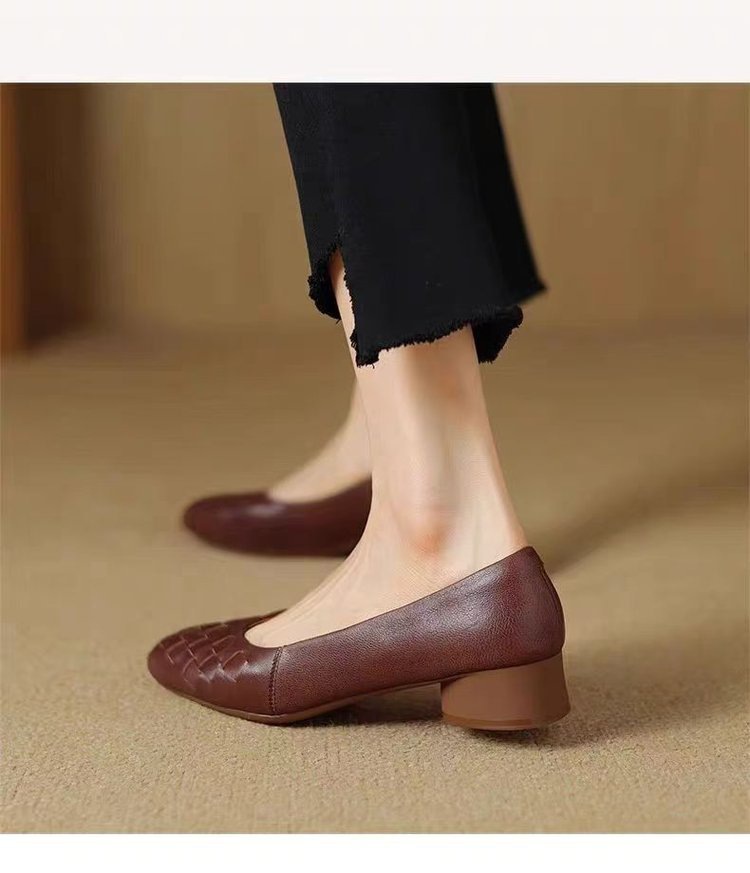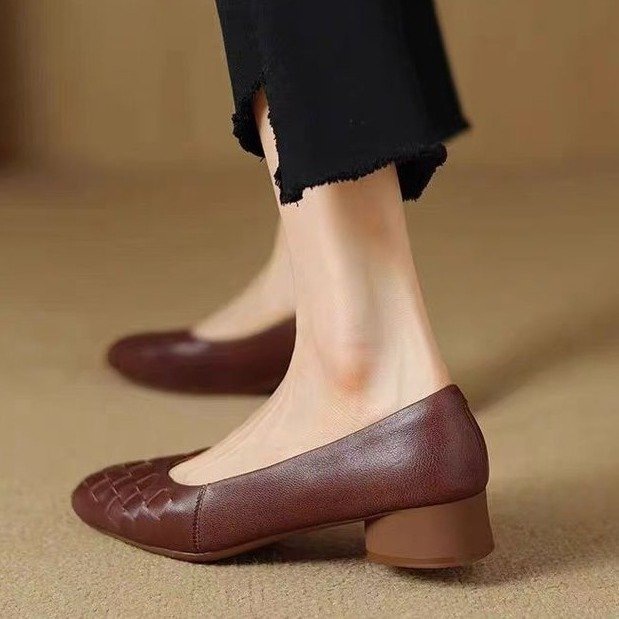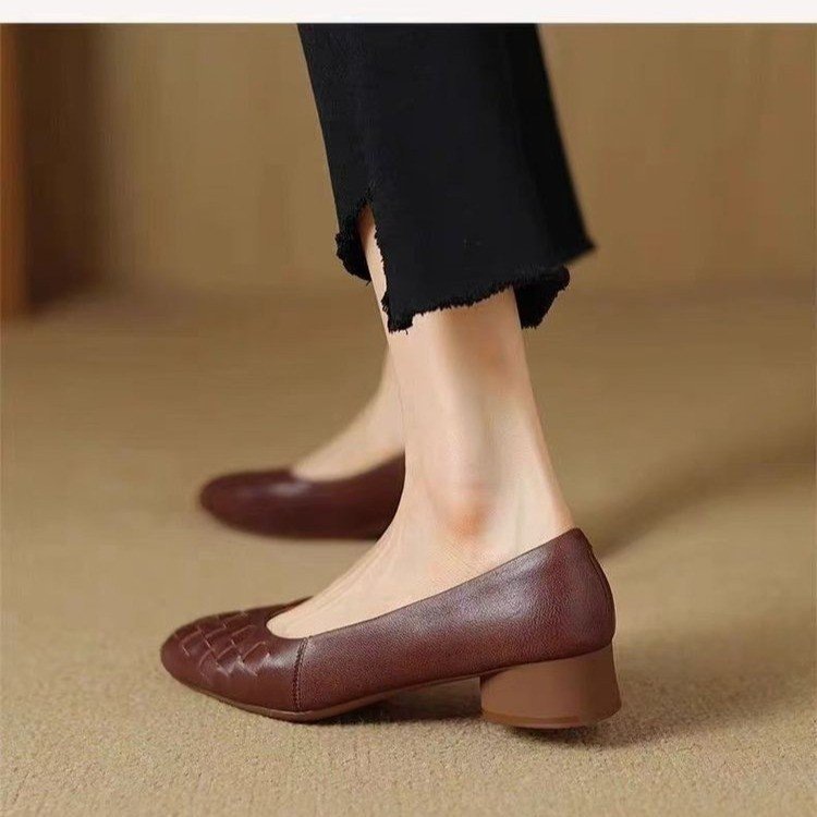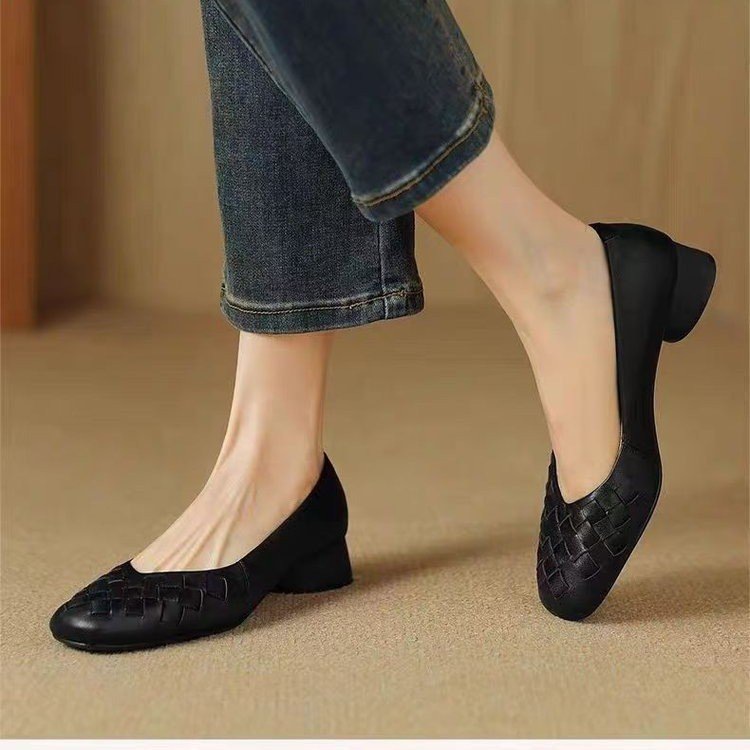 패션 두꺼운 힐 레트로 올 매치 스퀘어 발가락 얕은 입 신발 2025 봄 새로운 편안한 소프트 가죽 소프트 단독 경량 여성 신발스토어 가기