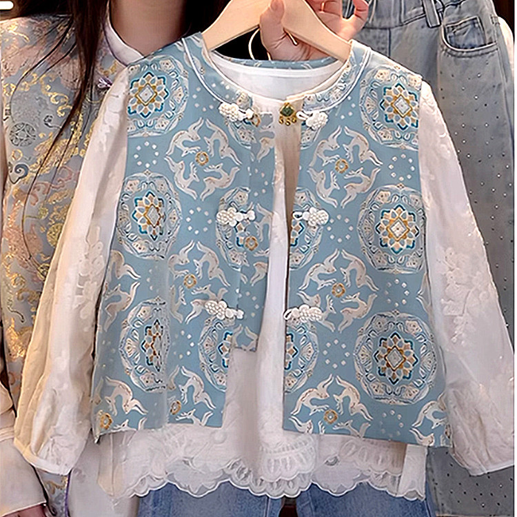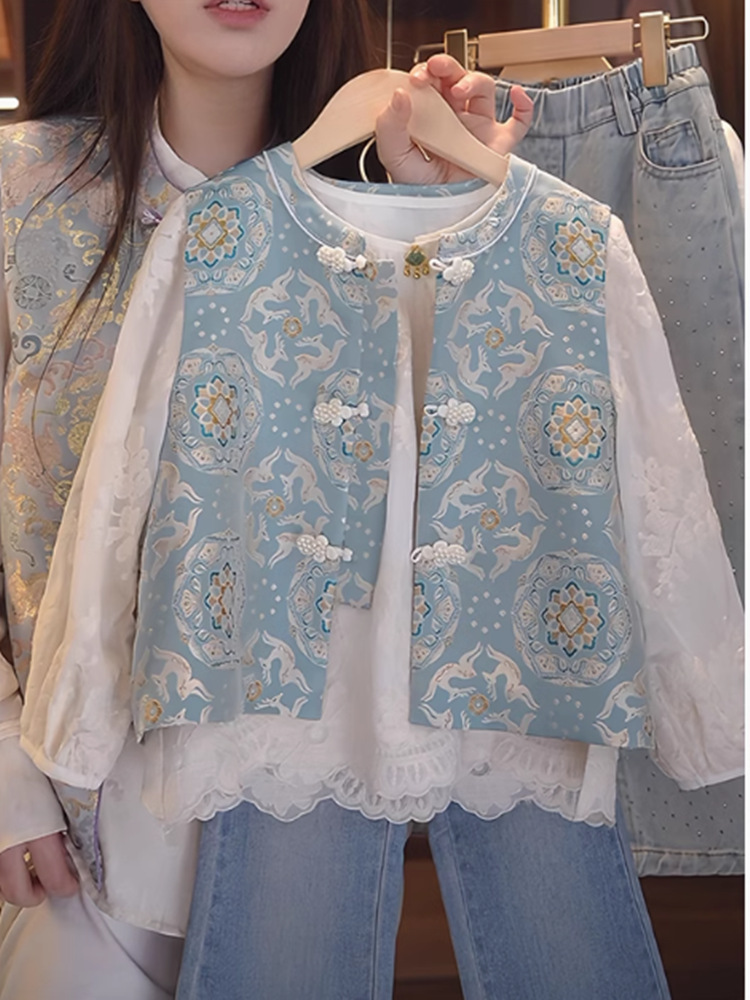 소녀 조끼 새로운 중국 봄 원피스 2025 새로운 어린이 국가 스타일 셔츠 세트 소녀들의 봄과 가을 한후 당나라 세트스토어 가기