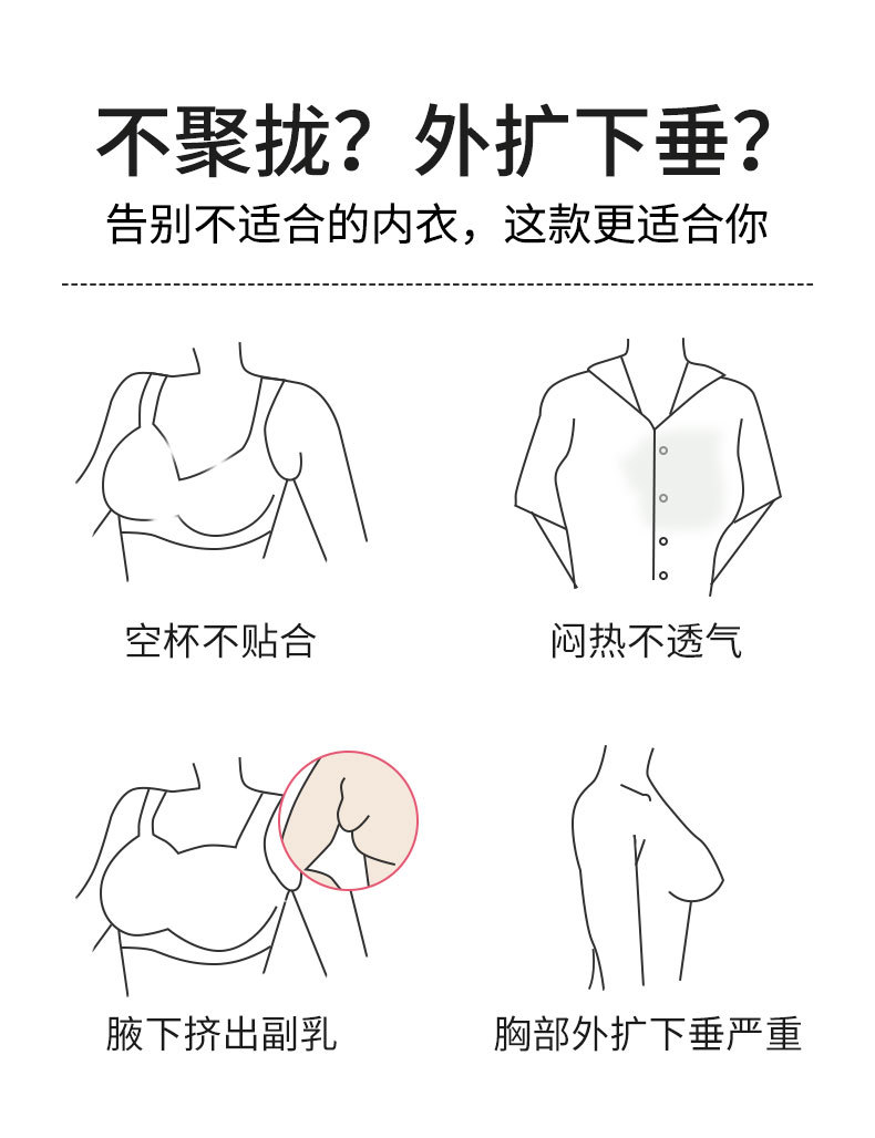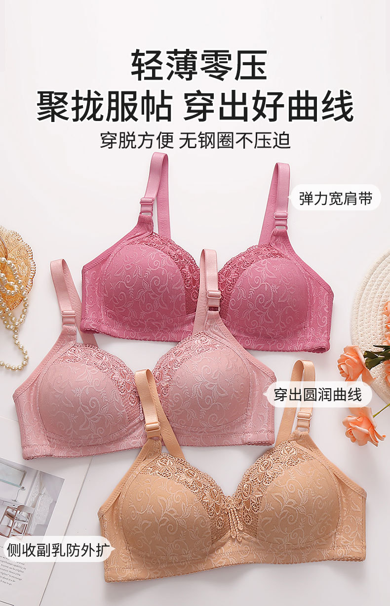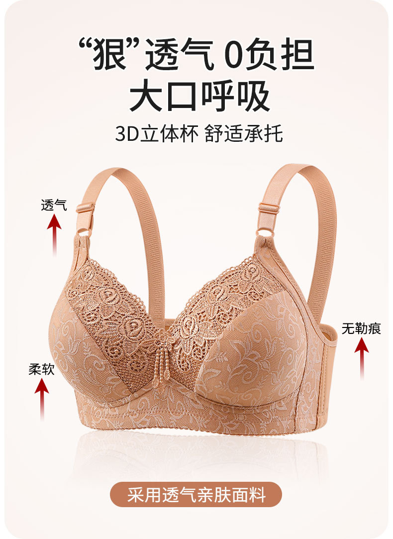 플러스사이즈 노와이어 얇은 조절속옷, 푸쉬업 처짐방지, 가슴축소, 아름다운 등, 편안한 중년엄마브라