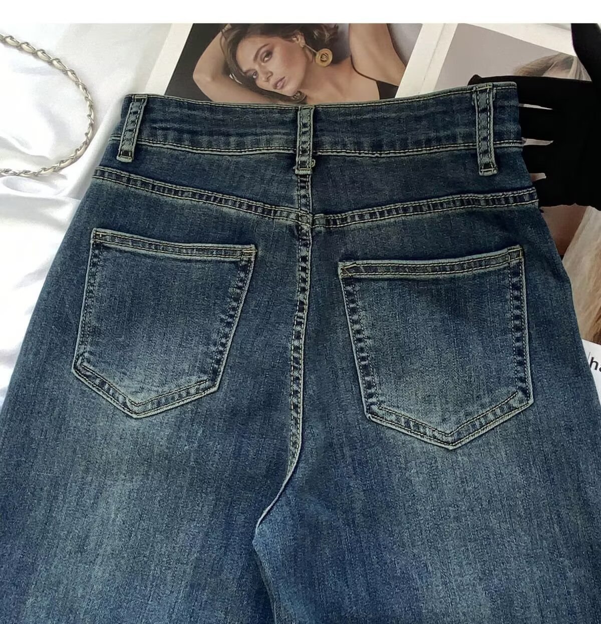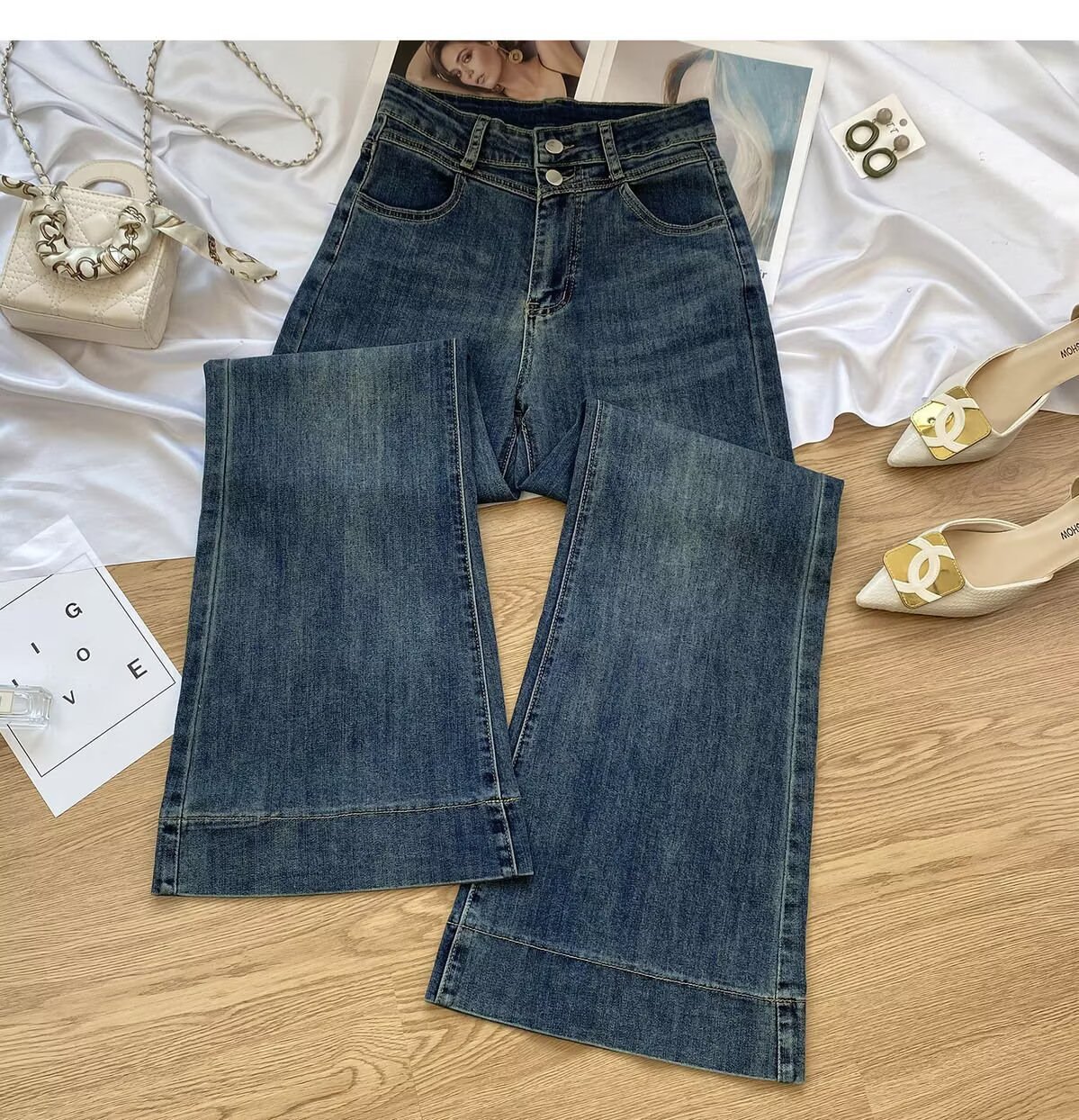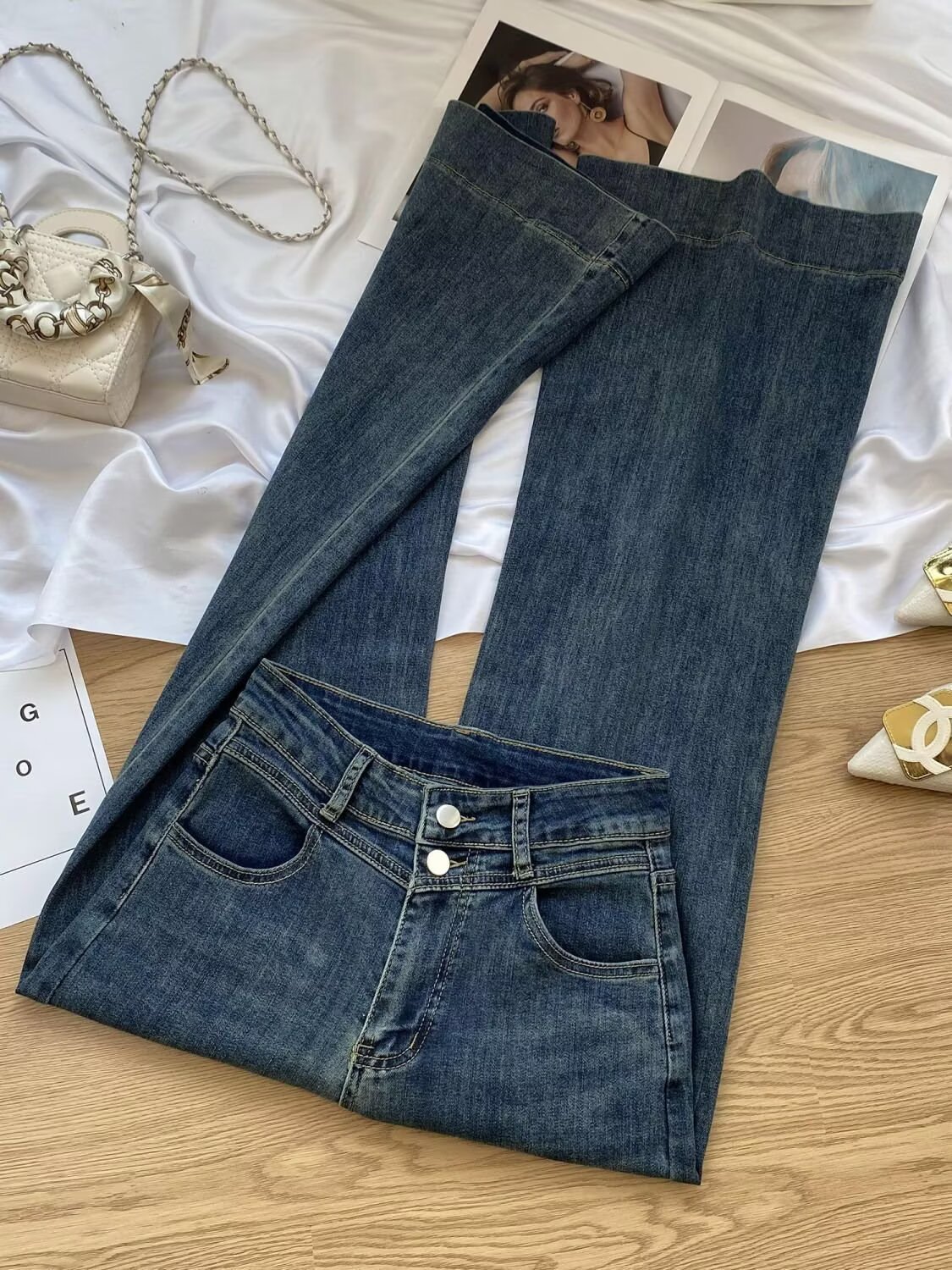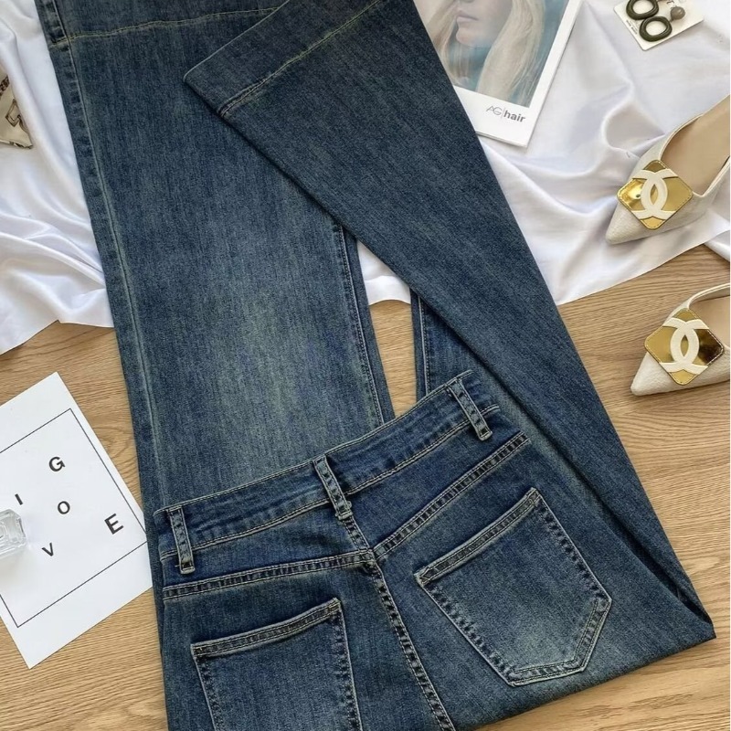 빈티지 마이크로 라 청바지 여성의 봄 2025 새로운 높은 허리 슬림 핏 슬리밍 작은 말굽 트럼펫 바지스토어 가기