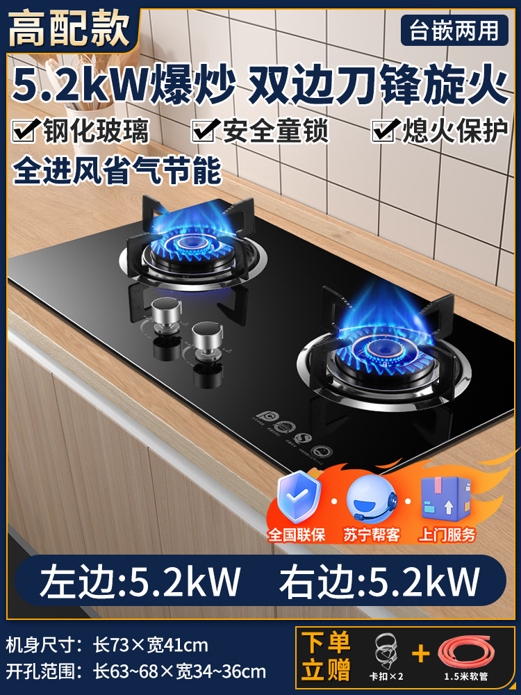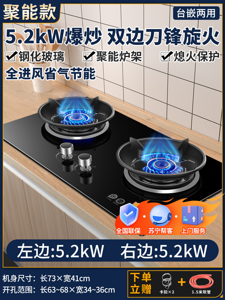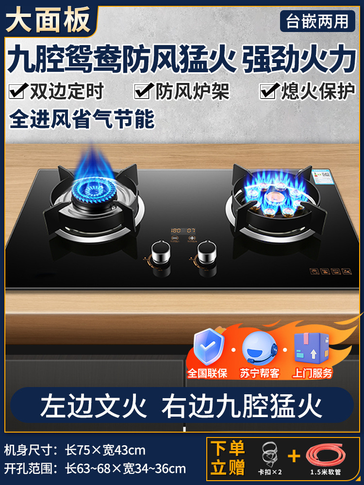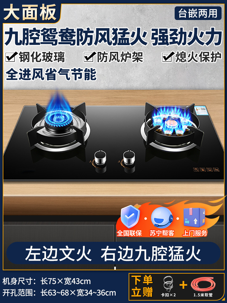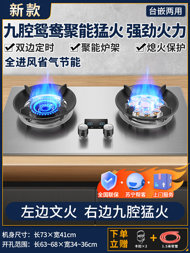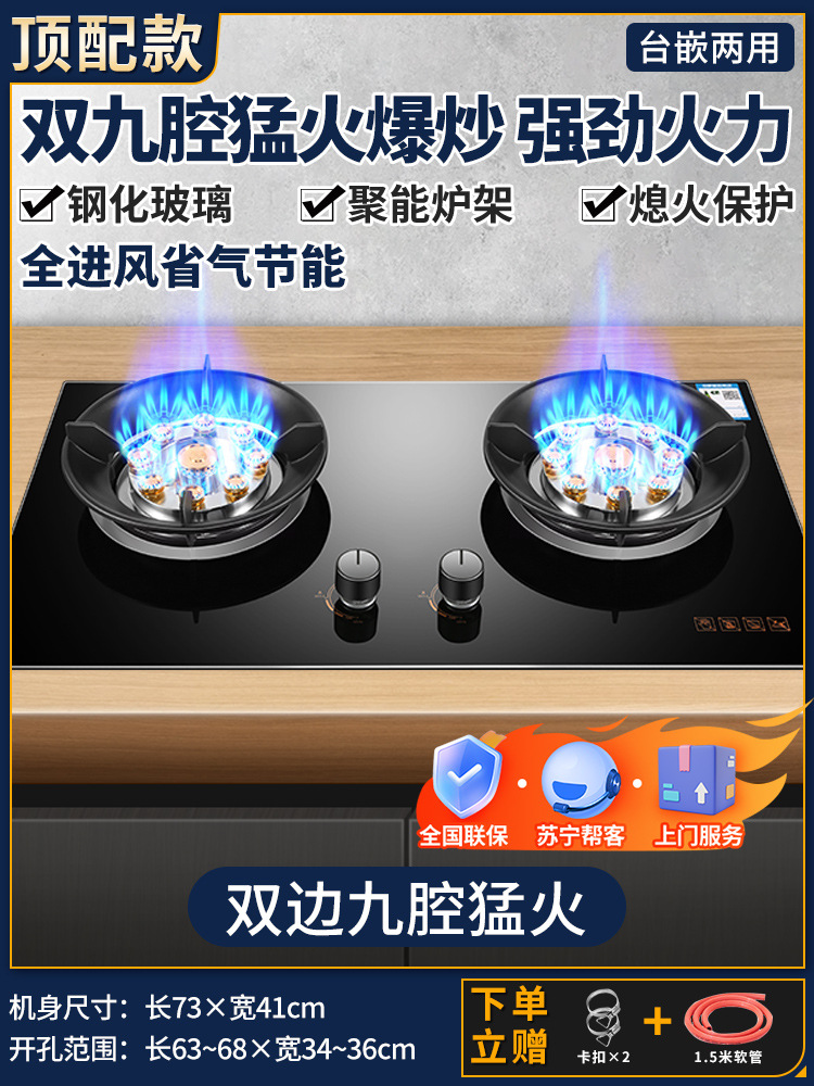치열한 스토브 내장 천연 가스 스토브 더블 스토브 가정용 LPG 가스 스토브 새로운 에너지 절약 스토브스토어 가기