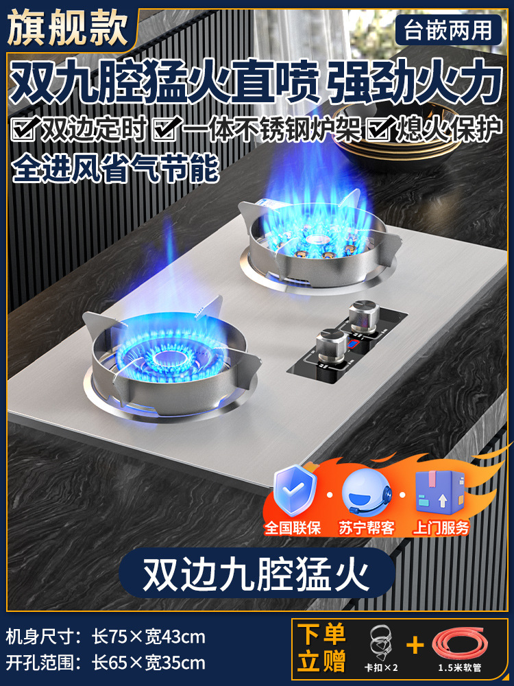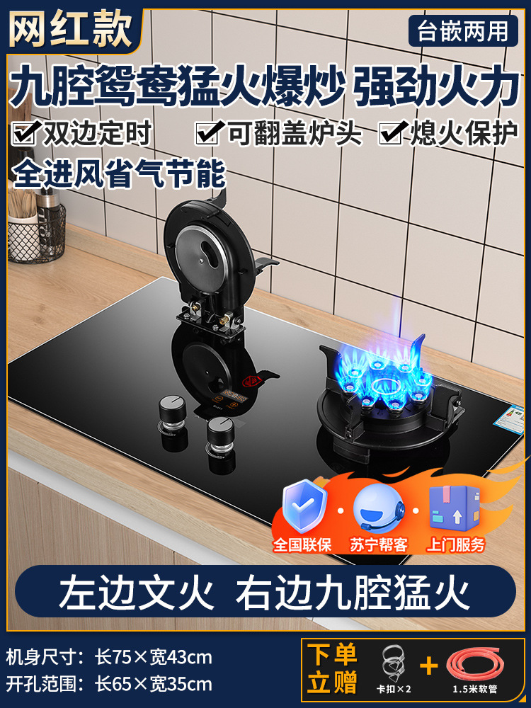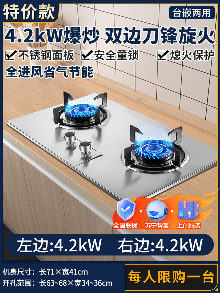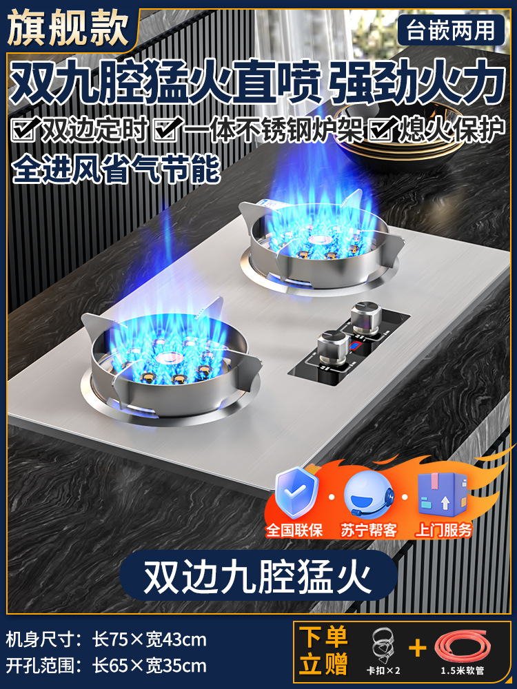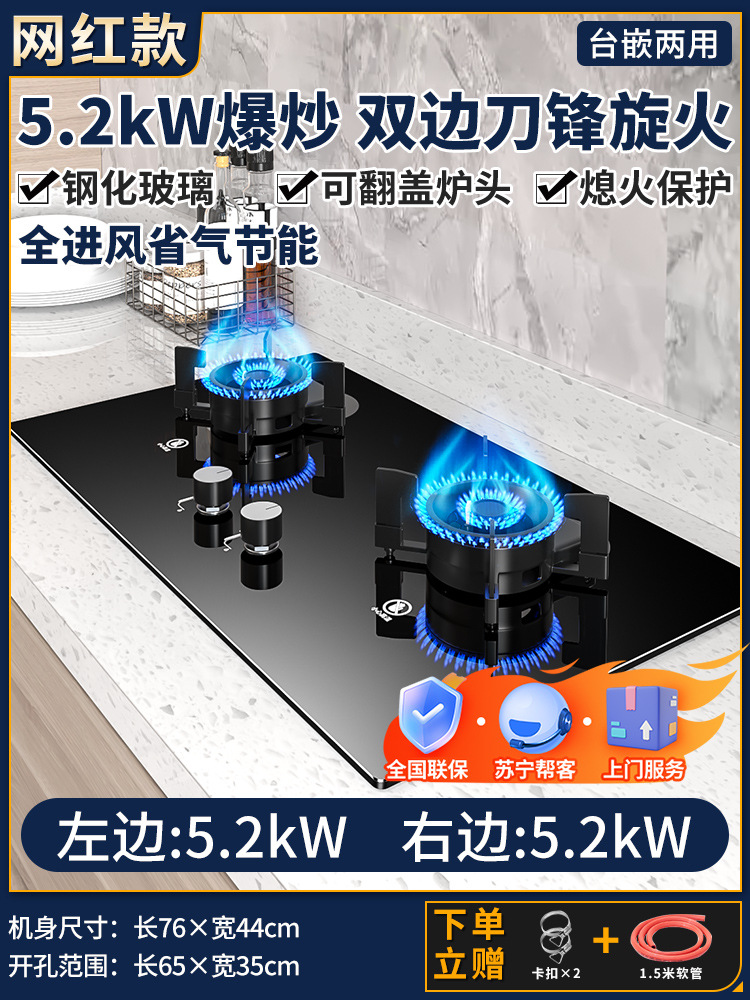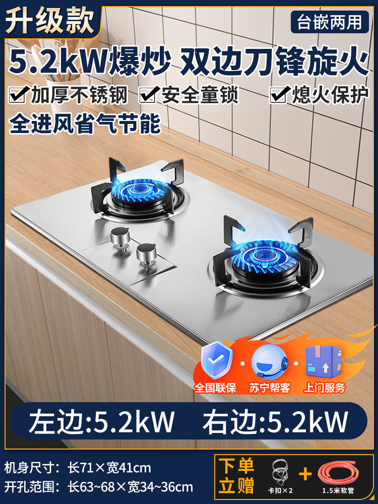 치열한 스토브 내장 천연 가스 스토브 더블 스토브 가정용 LPG 가스 스토브 새로운 에너지 절약 스토브스토어 가기