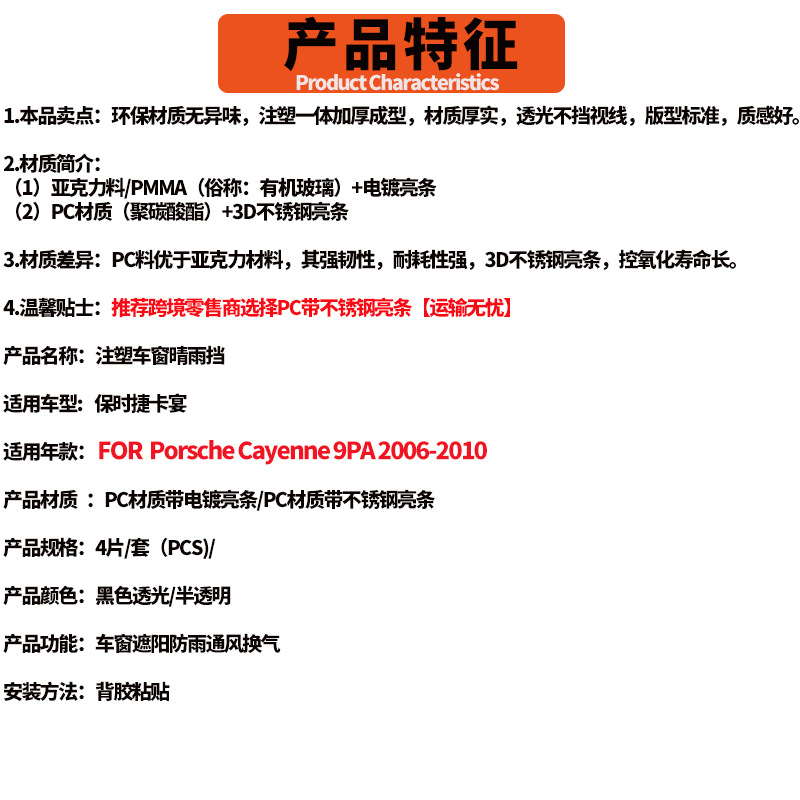 • 포르쉐 카이엔 2006-2010 PC에 적합 실버 브라이트 스트립 창 비 또는 빛 실드 4pCS