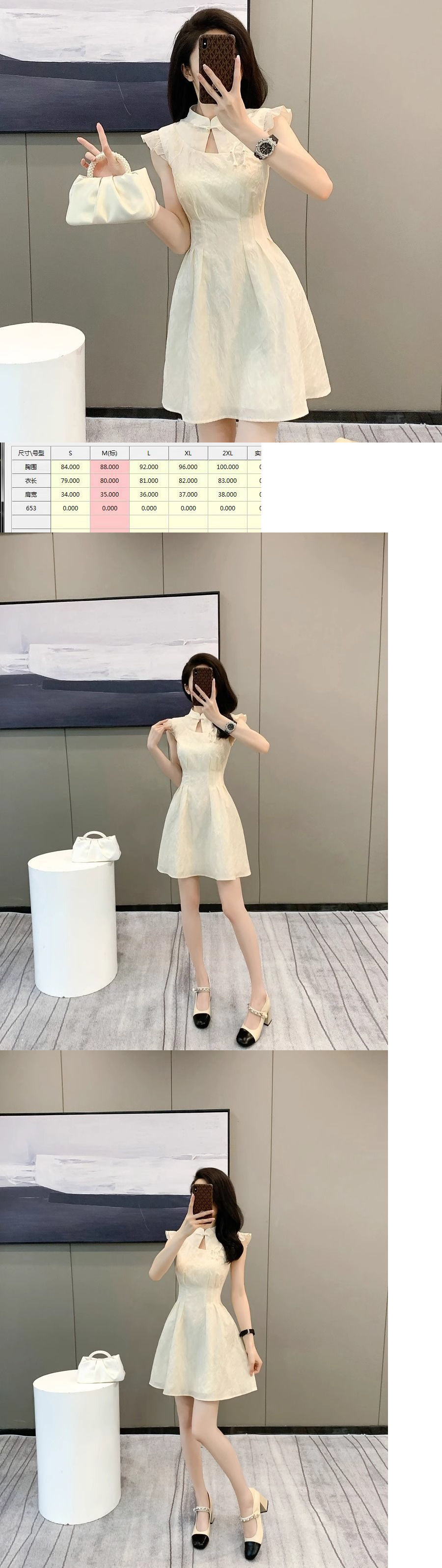 새로운 중국 스타일 국가 스타일 원피스 2025 여름 새로운 작은 비행 소매 타이트 허리 슬리밍 개선 된 청삼 여성의 우아한 치마스토어 가기