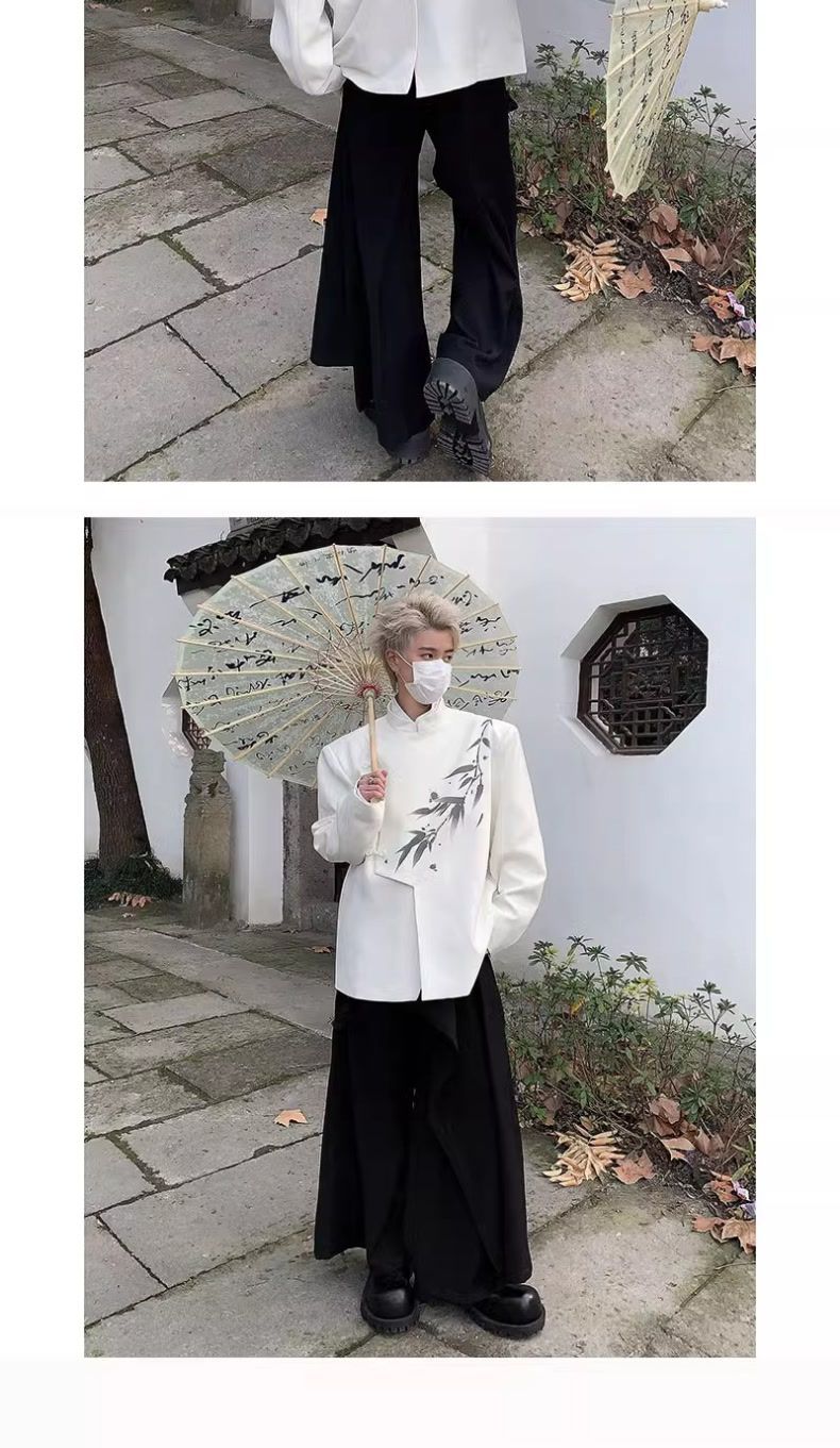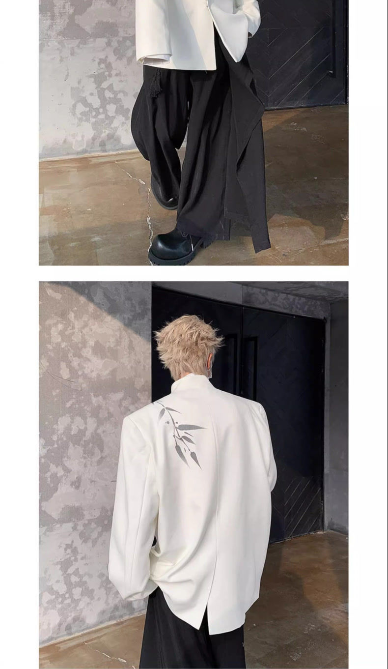 대나무 잎 인쇄 어깨 패드 화이트 세트 재킷 남자의 하이 엔드 틈새 세트 새로운 중국 남자 중국 스타일 탑