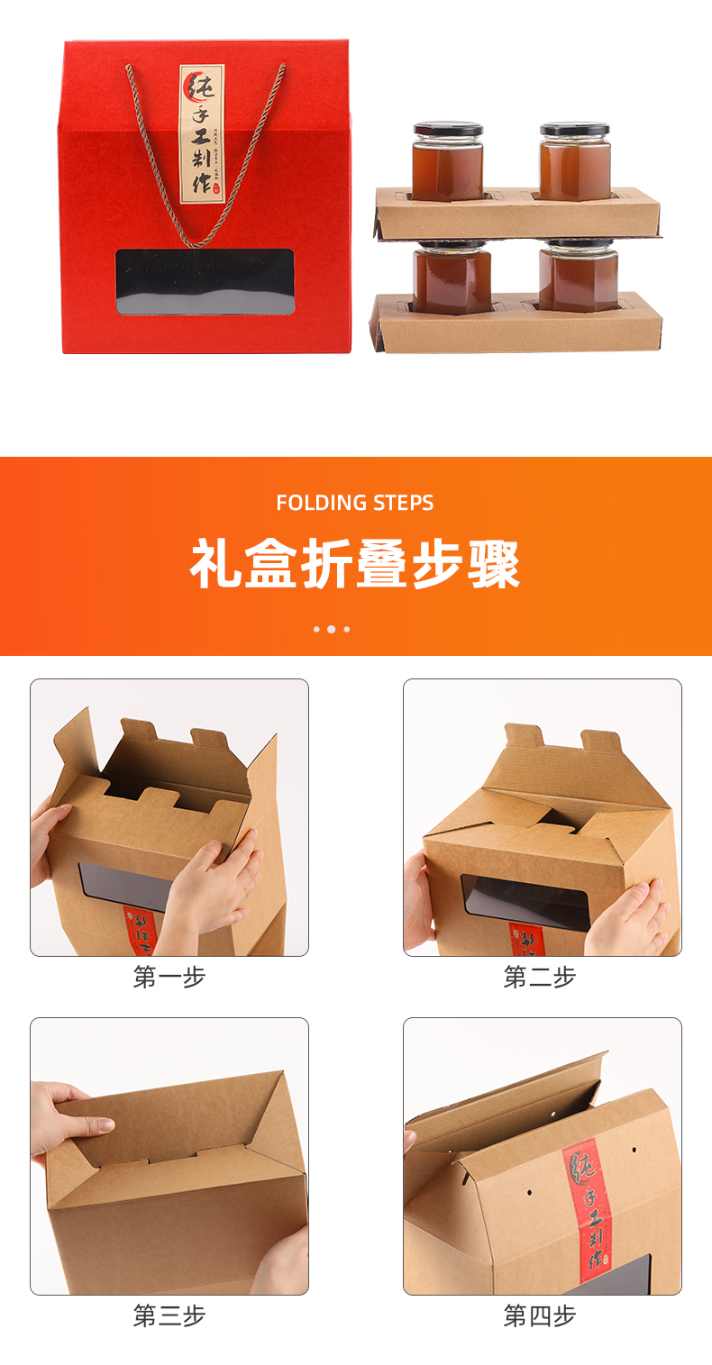 도매 선물 상자 꿀 칠리 소스 가을 배 레몬 페이스트 포장 상자 육각형 유리 병 더블 병 4 병 선물 상자스토어 가기