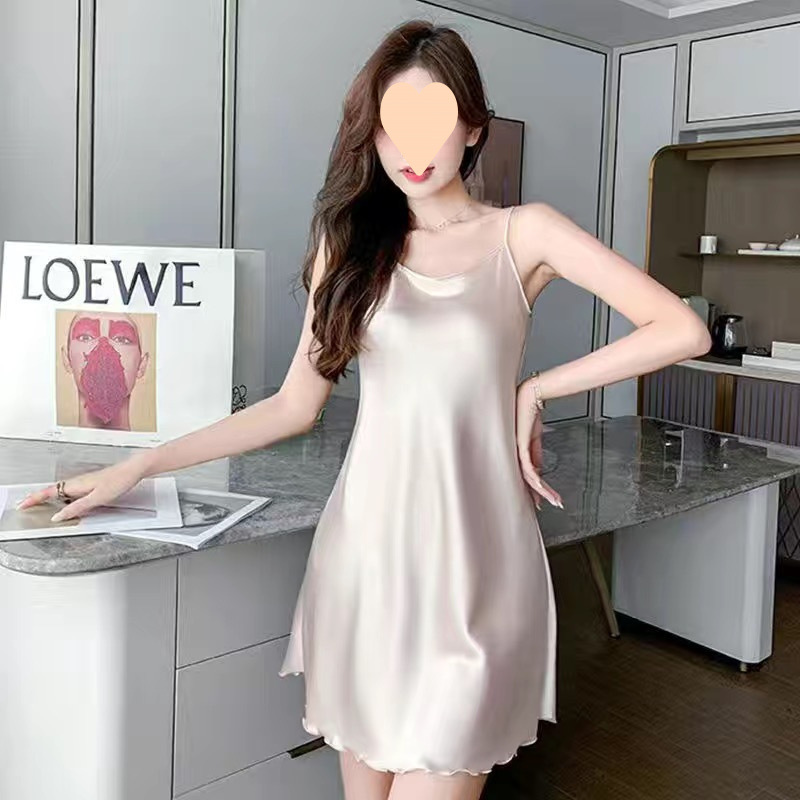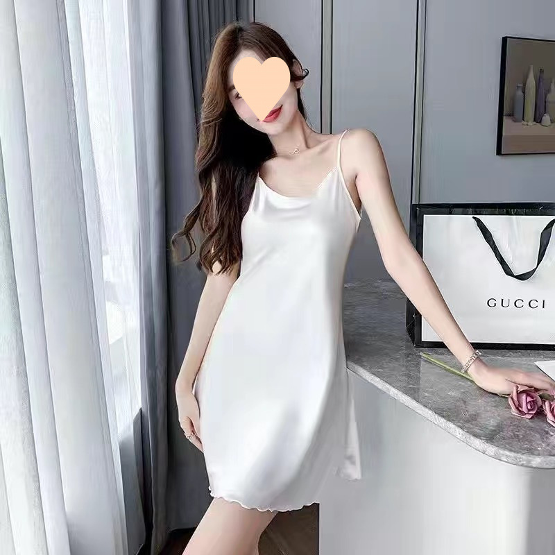 섹시한 슬링 파자마 여성의 여름 아이스 실크 잠옷 얇은 2024 새로운 하이 엔드 백리스 홈 옷 순수한 욕망 스타일스토어 가기