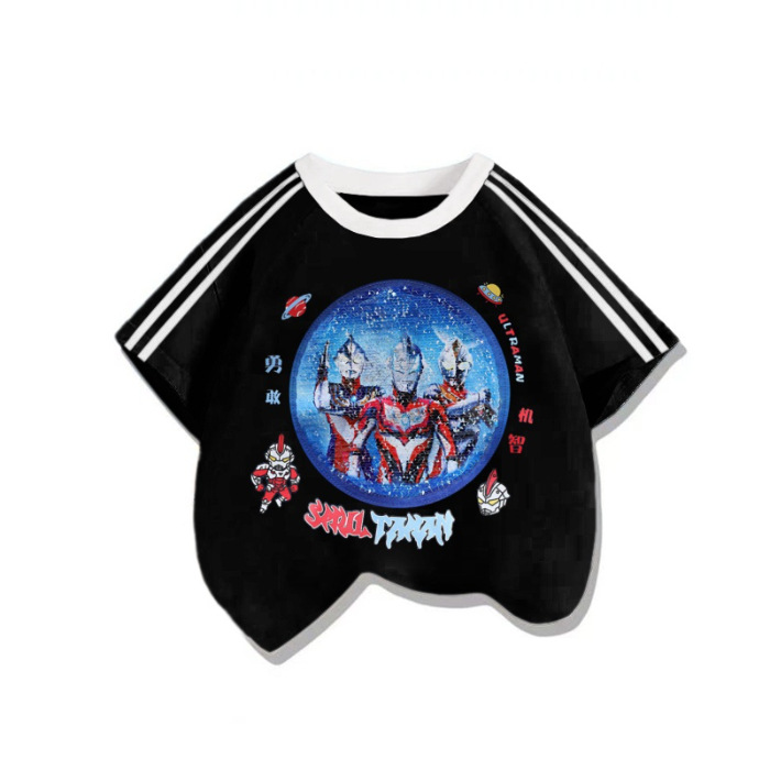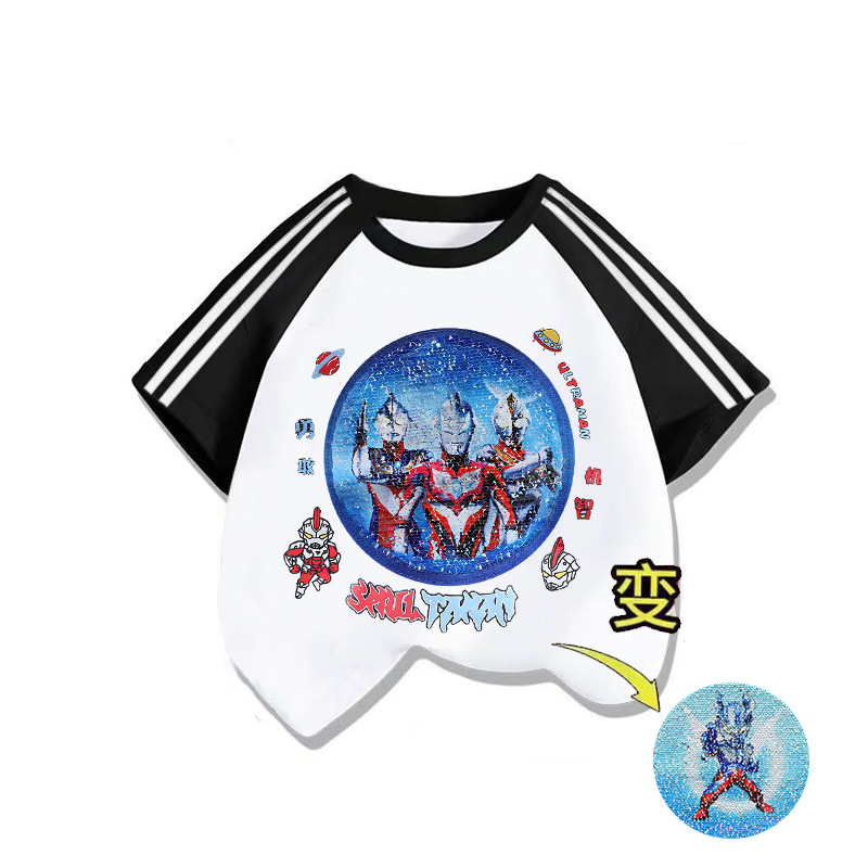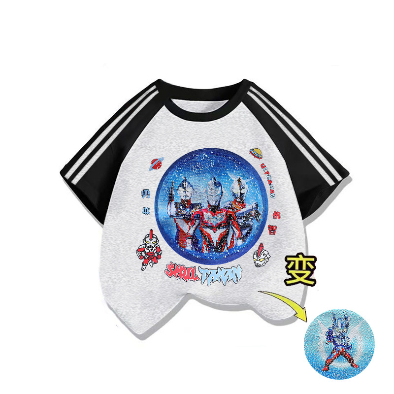남자들의 멋진 잘 생긴 패턴 알트만 색상 변경 옷 T 여름 어린이 구슬 수 놓은 얼굴-순수한 면 반팔 티셔츠