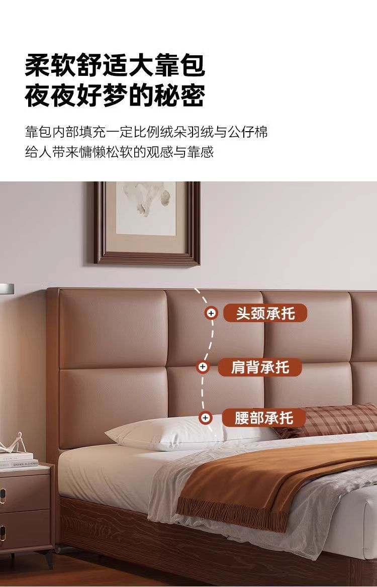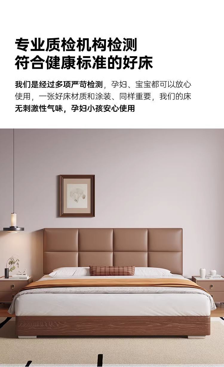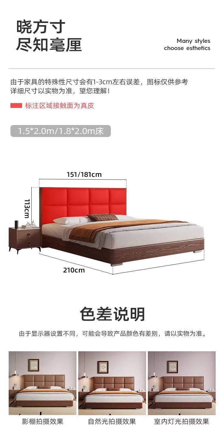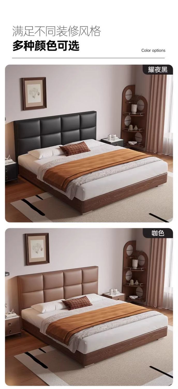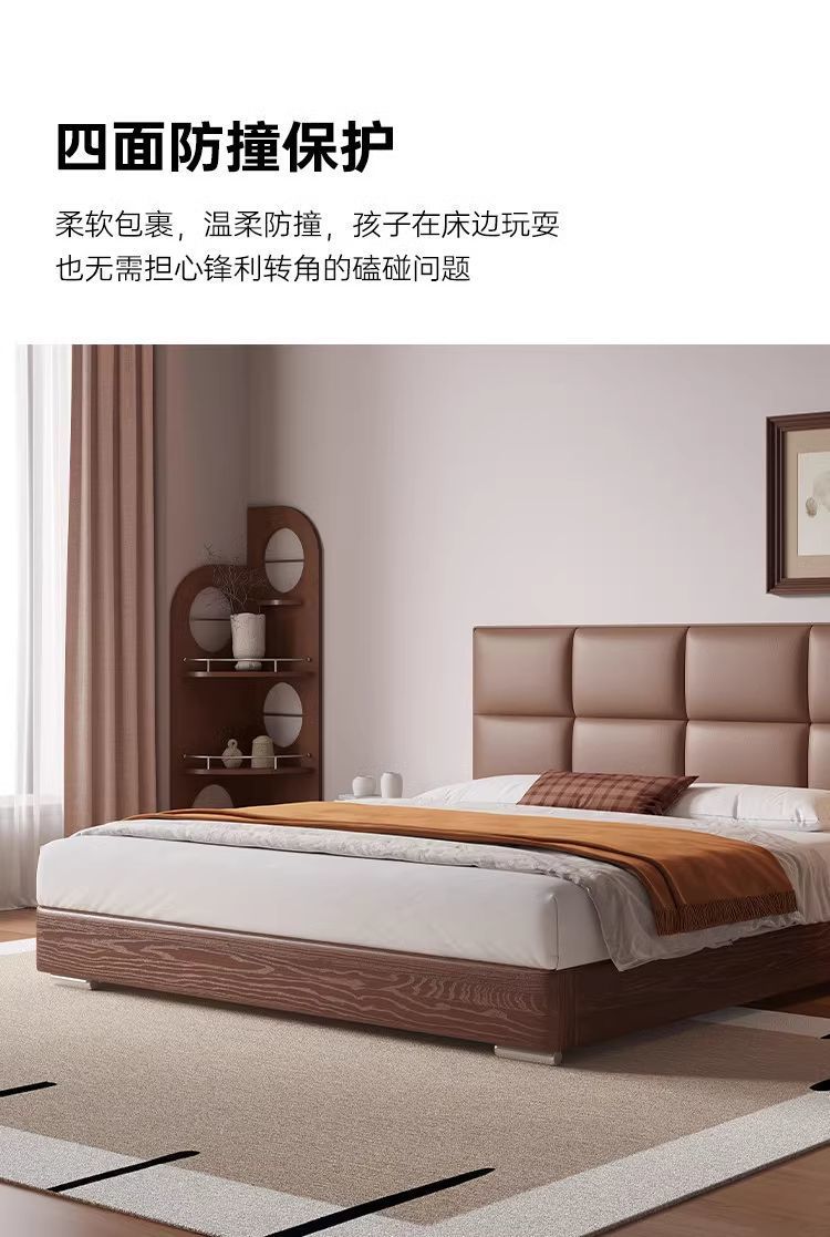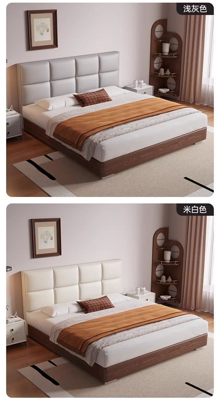 애쉬 우드 침대 이탈리아 미니멀리스트 마스터 침실 가죽 퀸 침대 하이 엔드 대기 레트로 블랙 토푸 블록 솔리드 우드 더블 침대스토어 가기