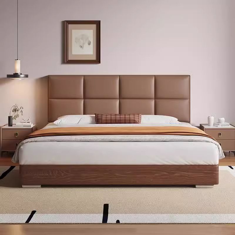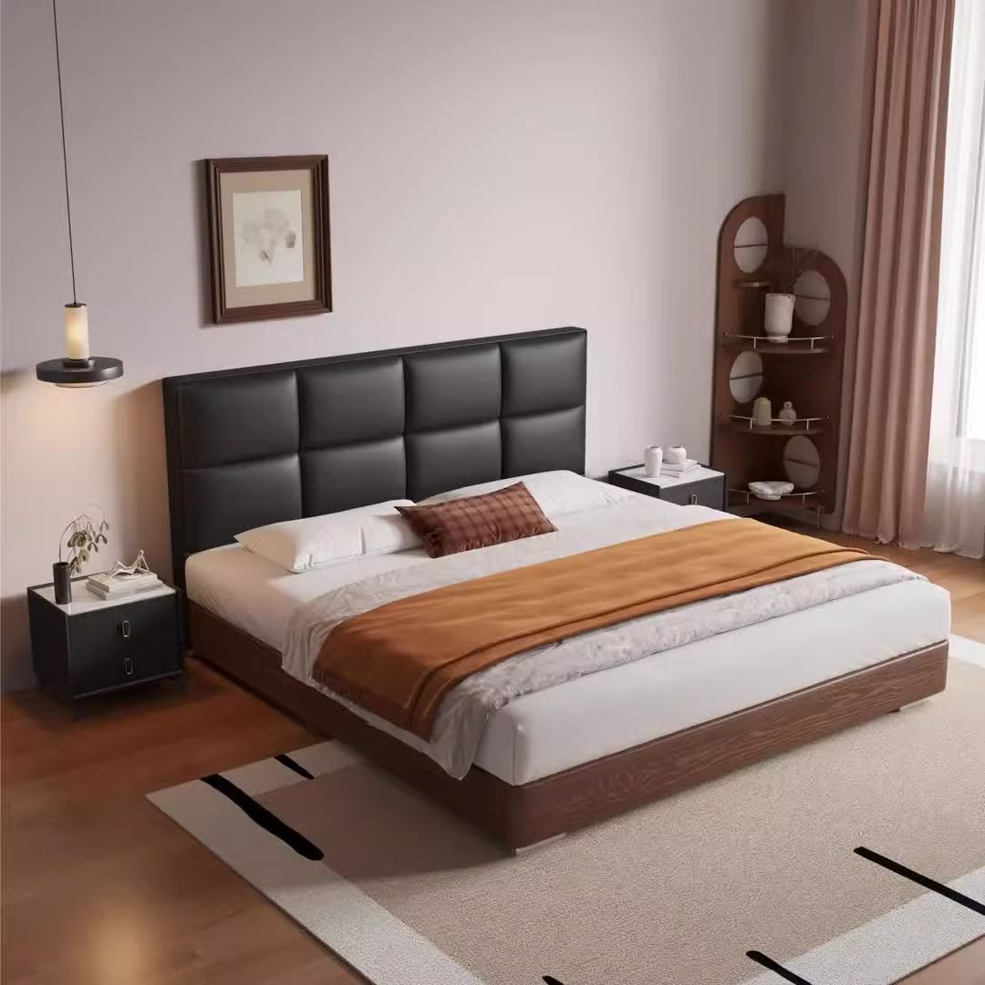 애쉬 우드 침대 이탈리아 미니멀리스트 마스터 침실 가죽 퀸 침대 하이 엔드 대기 레트로 블랙 토푸 블록 솔리드 우드 더블 침대