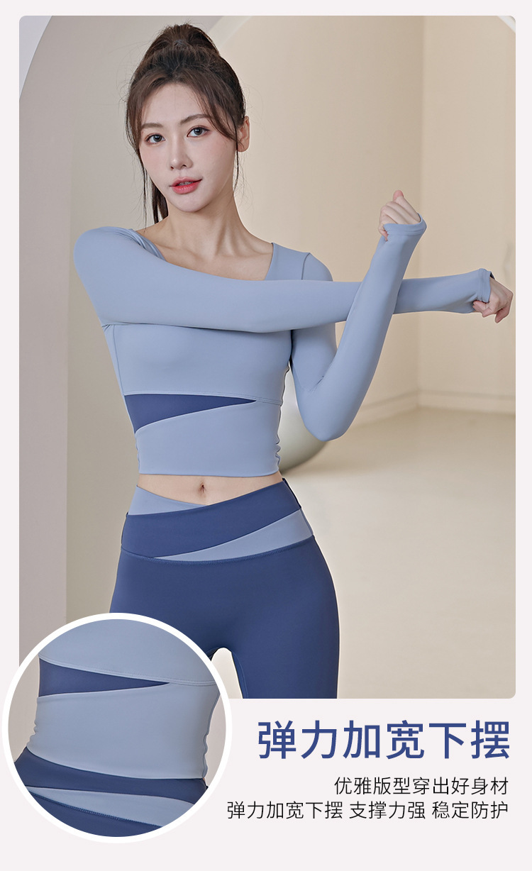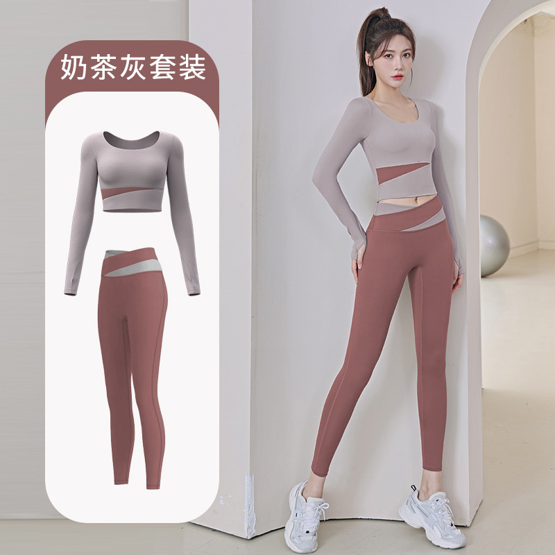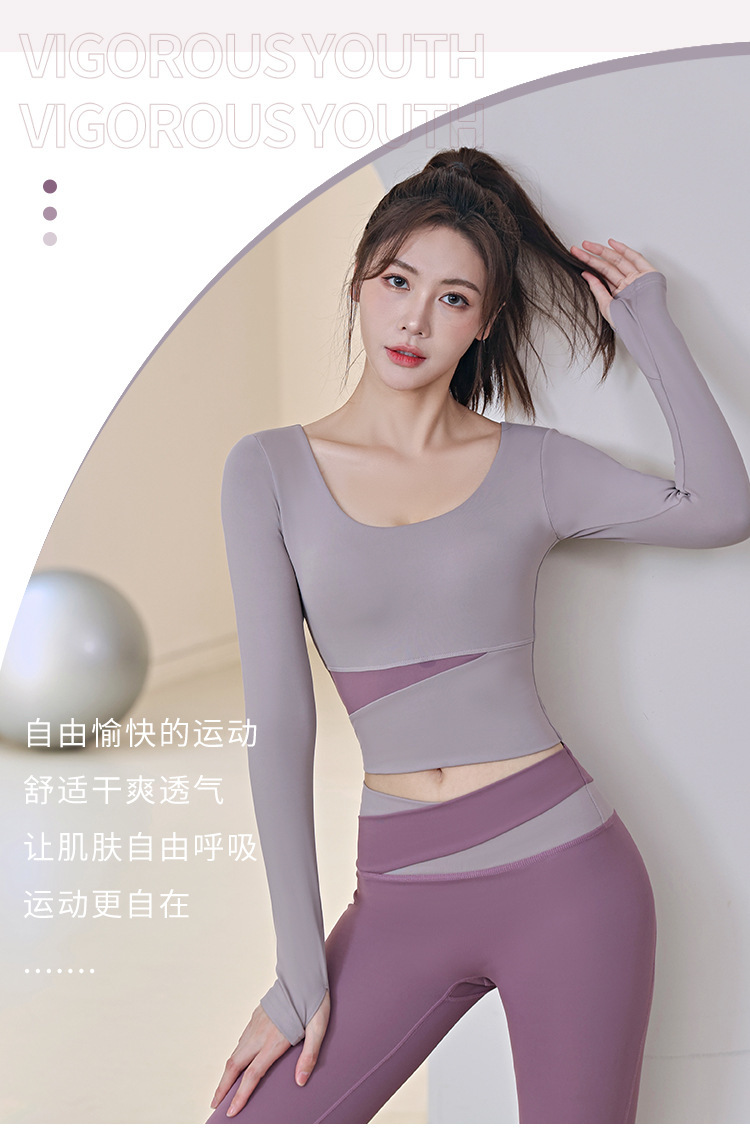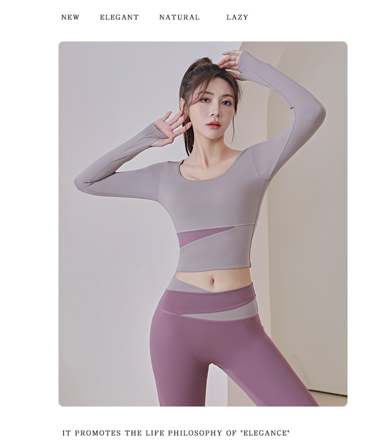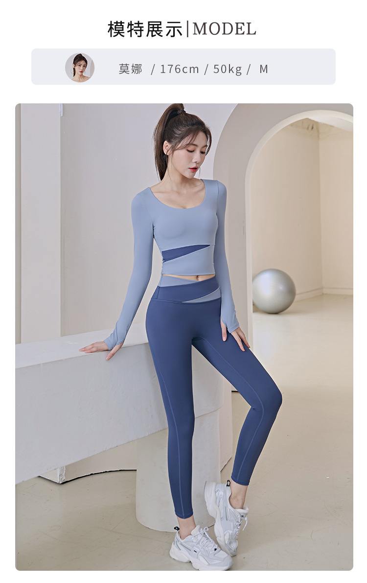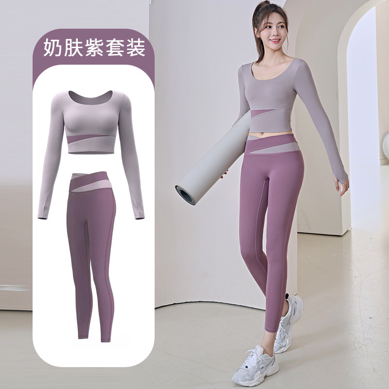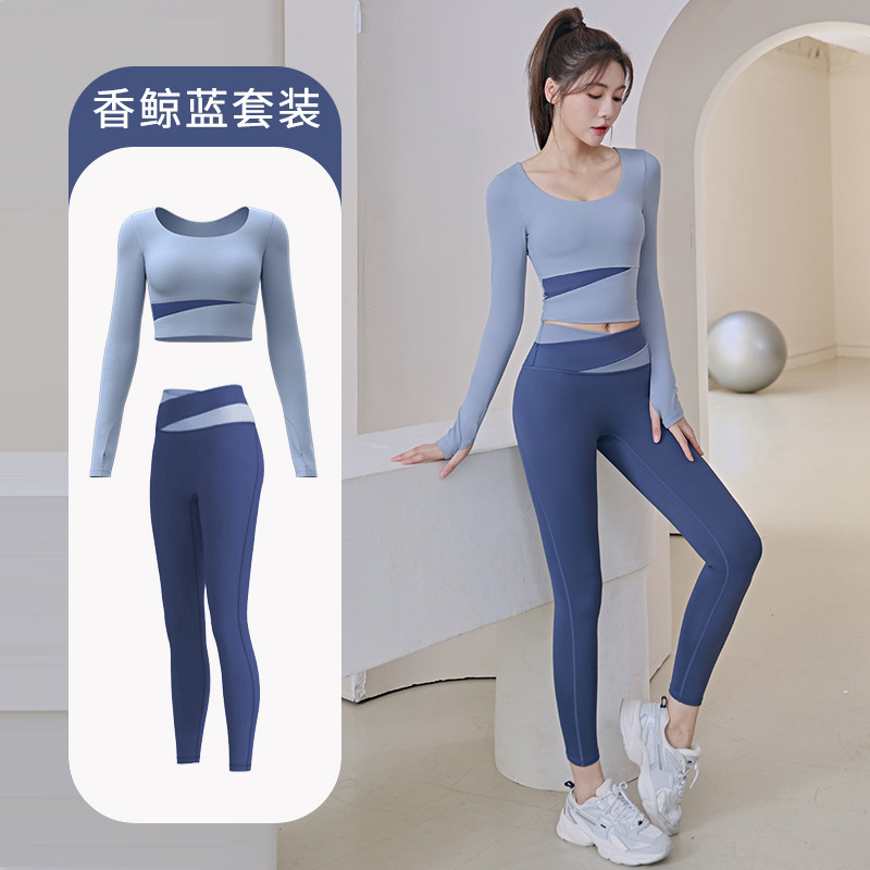 Juyitang 컬러 매칭 롱 요가 세트 원활한 알몸 피트니스 세트 원활한 슬리밍 스포츠 세트 여성스토어 가기